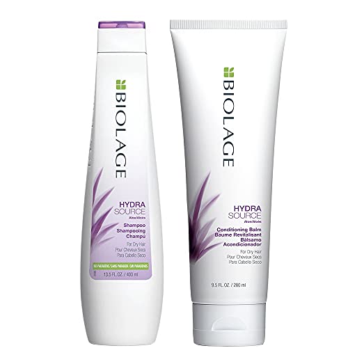 BIOLAGE Hydrasource Shampoo | Paraben-Free | For Dry Hair | 13.5 Fl. Oz. & Hydrasource Conditioning Balm | Sulfate-Free | For Medium To Coarse Hair | 9.5 Fl. Oz.
