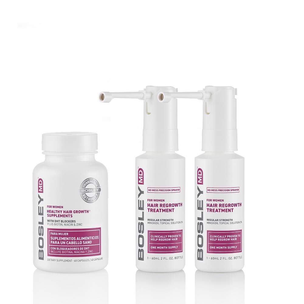 BosleyMD Women's Hair Growth Supplement and 2% Minoxidil Extra Strength Sprayer (2 Month Supply)