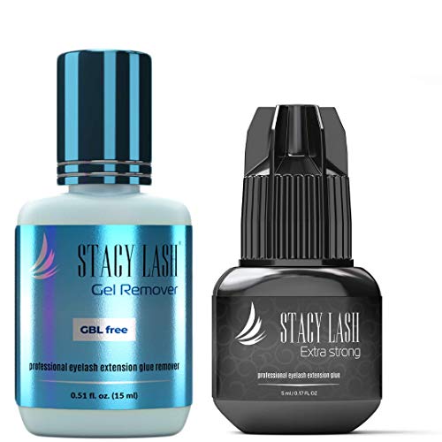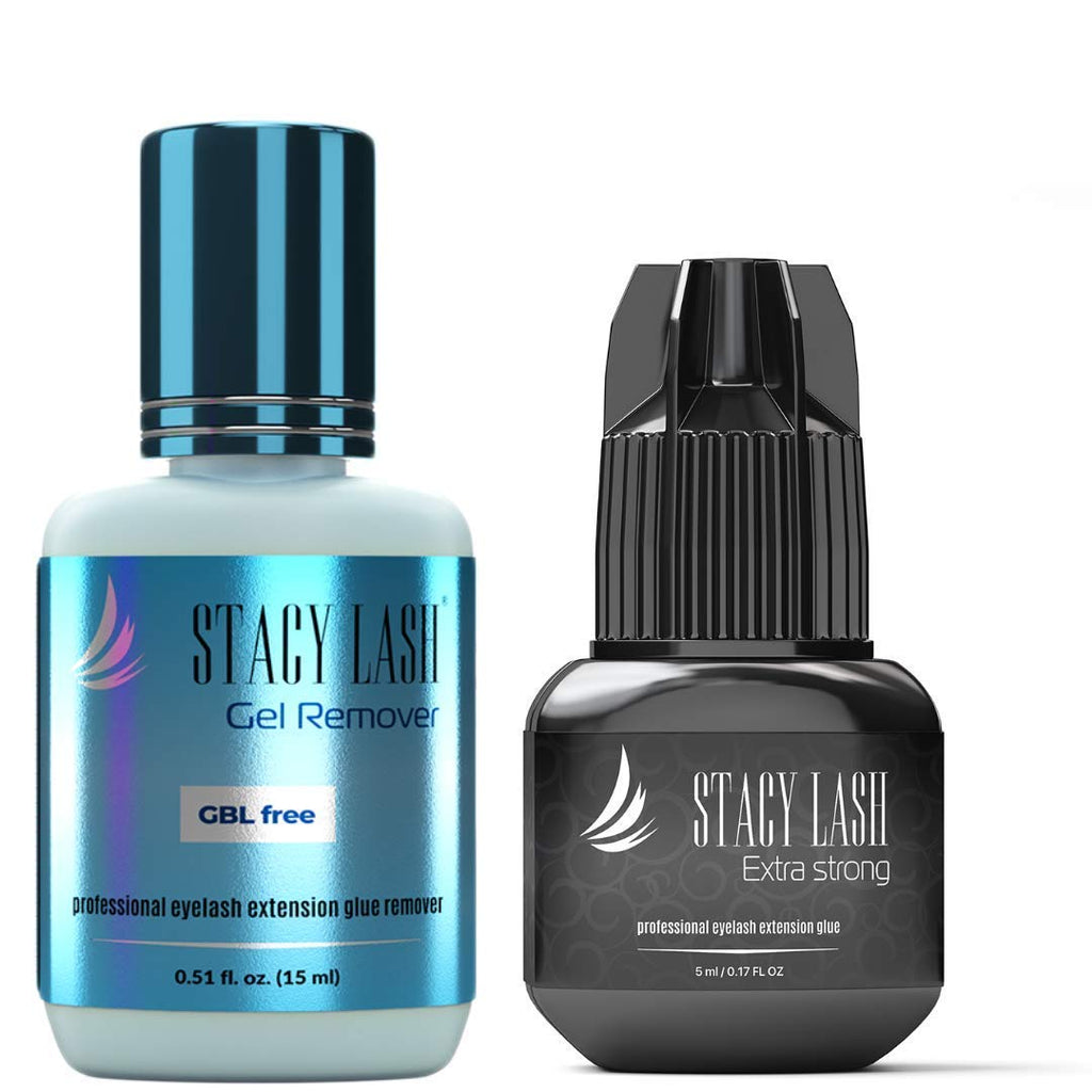 Eyelash Extension Glue + Gel Remover - Stacy Lash 5 ml / 0.5-1 Sec Drying time/Retention – 7 Weeks/Maximum Bonding Power/Professional Use Only Black Adhesive/Gel Remover/ 15 ml/GBL Free/Fast Lash Adhe