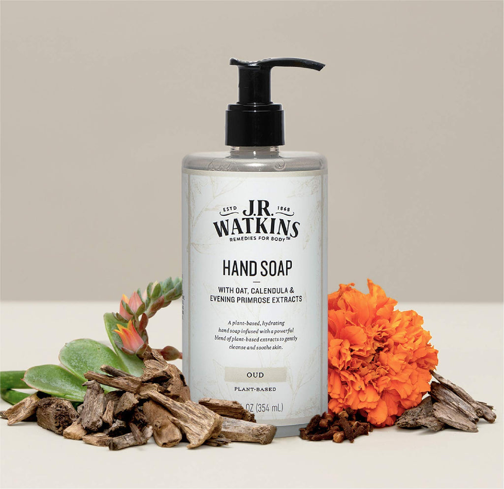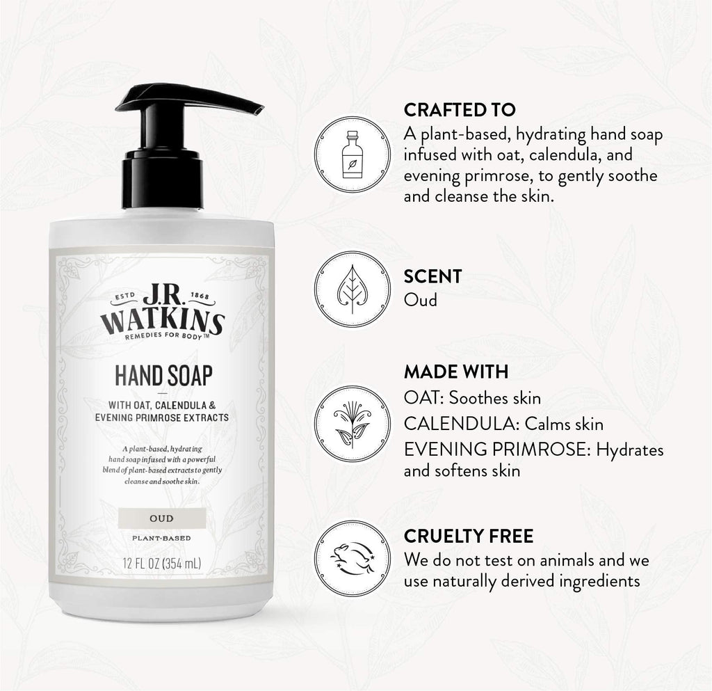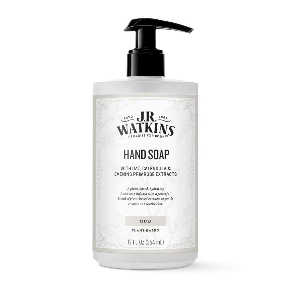 J. R. Watkins Moisturizing Gel Hand Soap, Oud, Plant-Based Ingredients, 12 oz Pump