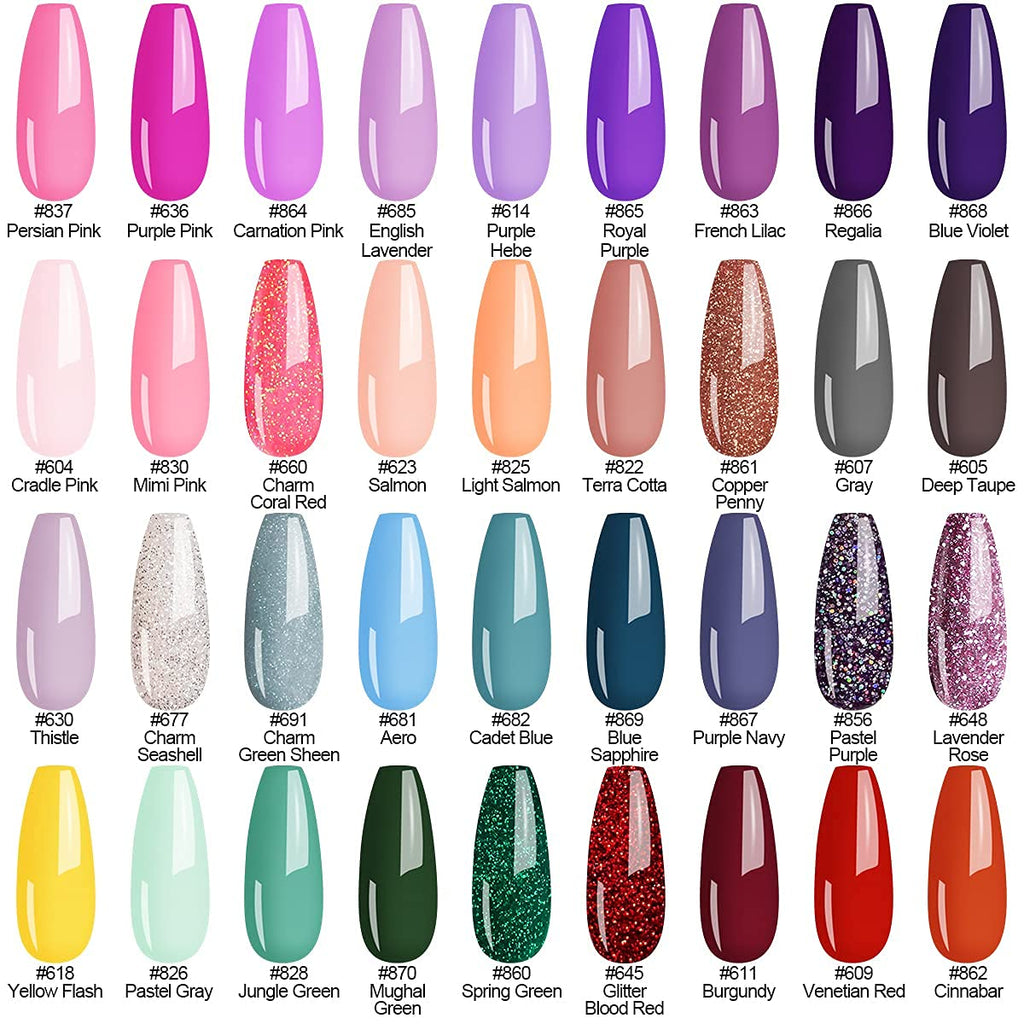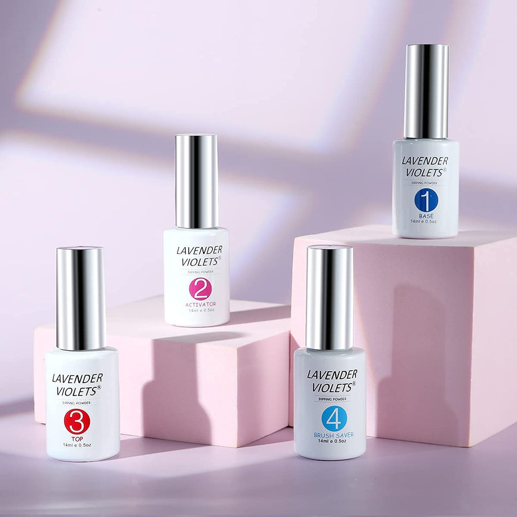 Lavender Violets Quick Drying Dipping Powder Bundle Set of 36 Colors Pale Purple, Orchid, Nude, Pink, Navy Blue and Christmas Colors with Base coat, Top coat, Activator, and Brush Saver