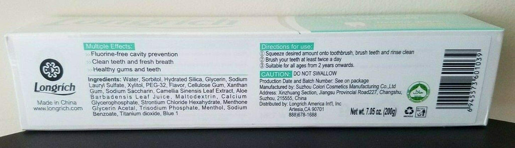 Longrich Toothpaste White Tea Multi-Effect, Fluoride Free.