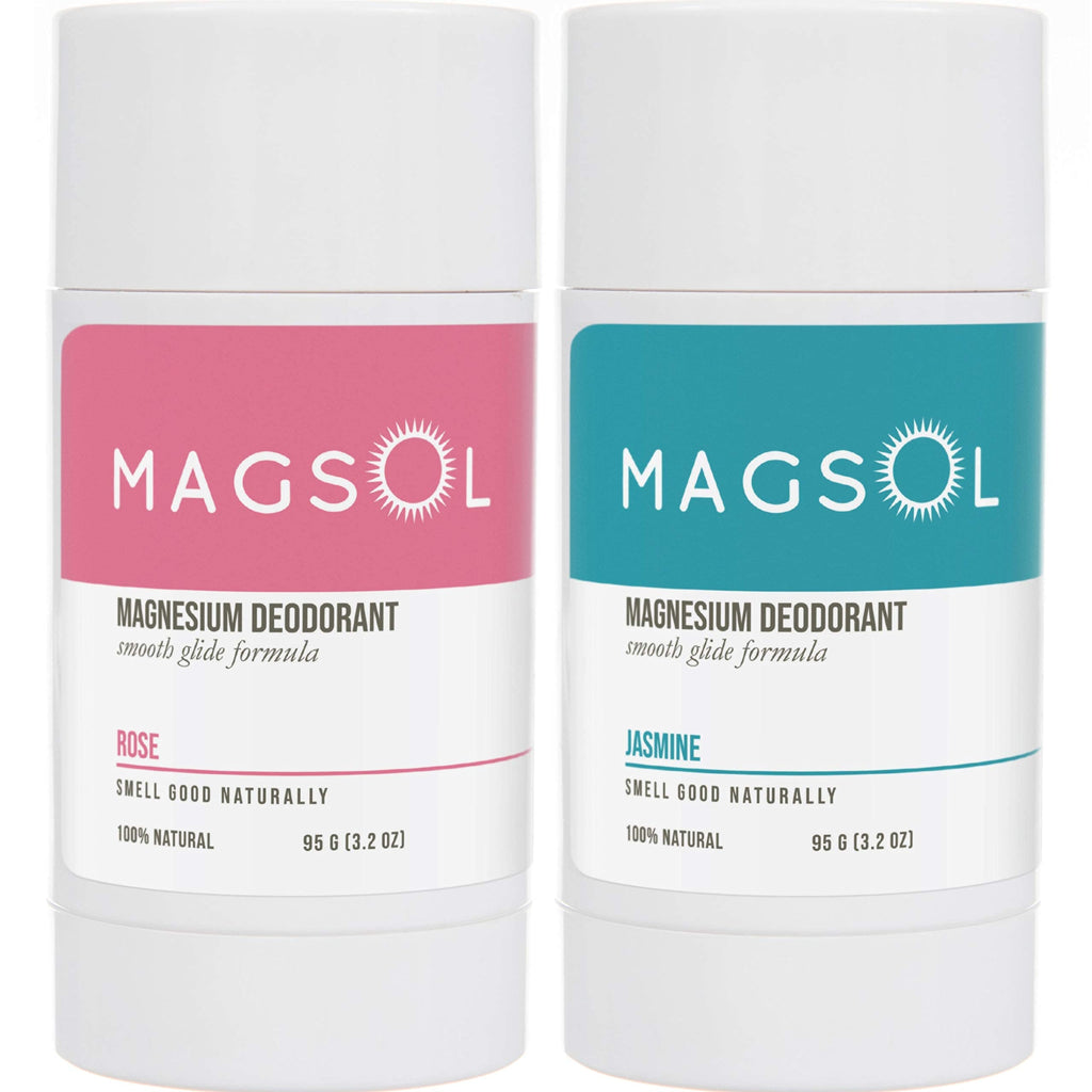 MAGSOL Natural Deodorant for Women & Men - Womens Deodorant with Magnesium - Perfect for Ultra Sensitive Skin, Aluminum Free Deodorant for Women, Baking Soda Free (2 Pack Bundle: Rose & Jasmine)
