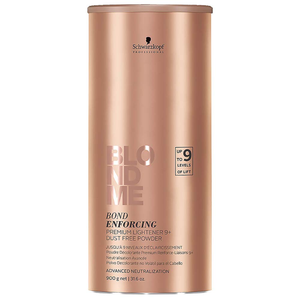 Schwarzkopf BlondMe Powder Bleach Premium Lightener 9+ Bond Enforcing Dust Free 900g, Schwarzkopf BlondMe 9% / 30 Volume Premium Developer 1 Liter, M Hair Designs Tint Brush/Comb (Bundle - 3 items)