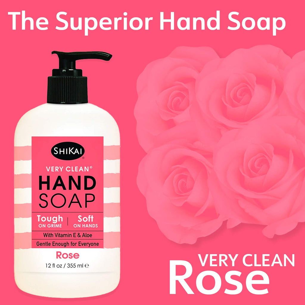 ShiKai - Very Clean Liquid Hand Soap, Removes Tough Grease & Dirt Yet Very Gentle On Hands, Won't Dry Out Hands, Mild Enough For The Whole Family (Rose, 12 oz)