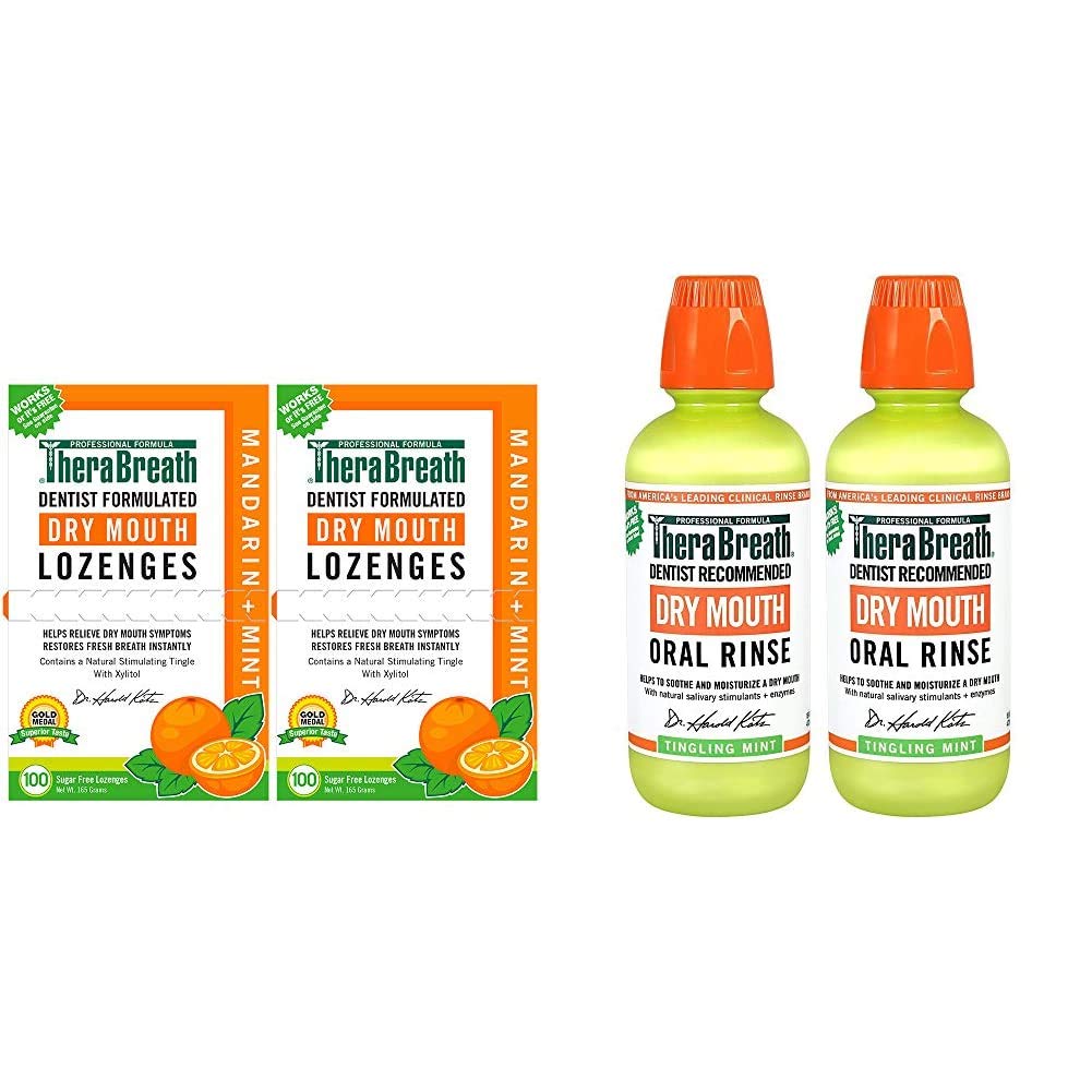 TheraBreath Dry Mouth Lozenges with Zinc, Mandarin Mint, 100 Lozenges (Pack Of 2) and Dry Mouth Oral Rinse, 16 Ounce Bottle (Pack Of 2)