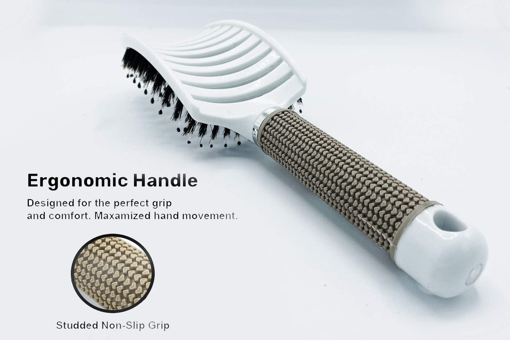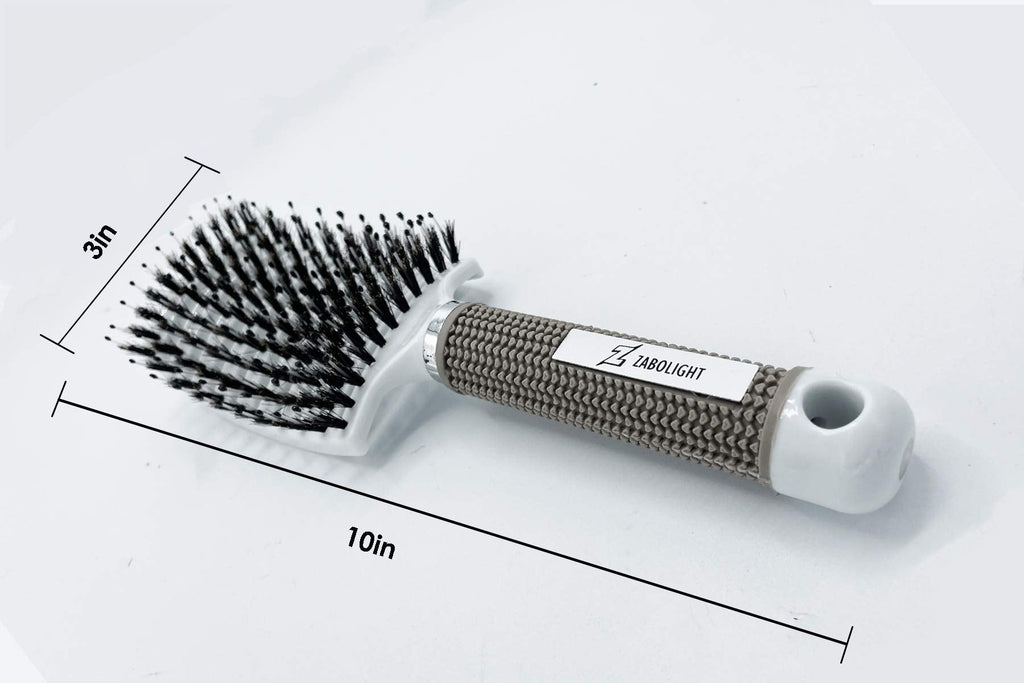 Zabolight Premium Vent Boar Bristle Hair Brush Vented Detangling Oversize Hair Brush for Thick Long Curly Hair, Curved Fast Blow Drying Brush for Women & Men (White)