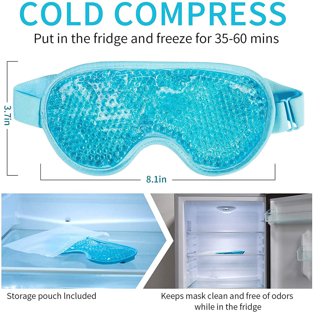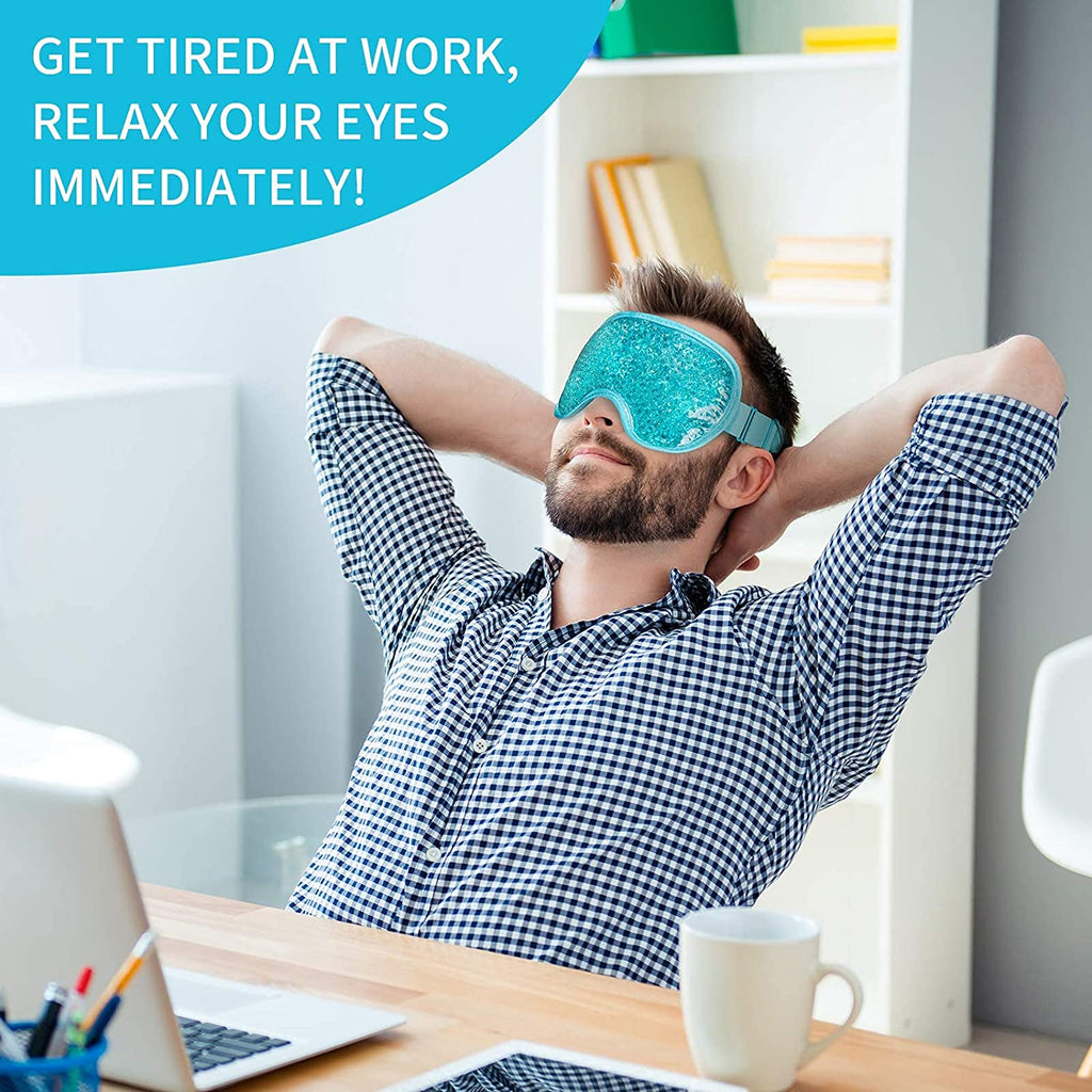 Cooling Ice Gel Eye Mask-Reusable Eye Masks, Sleeping Mask with Plush Backing for Headache, Puffiness, Migraine, Stress Relief (Blue)