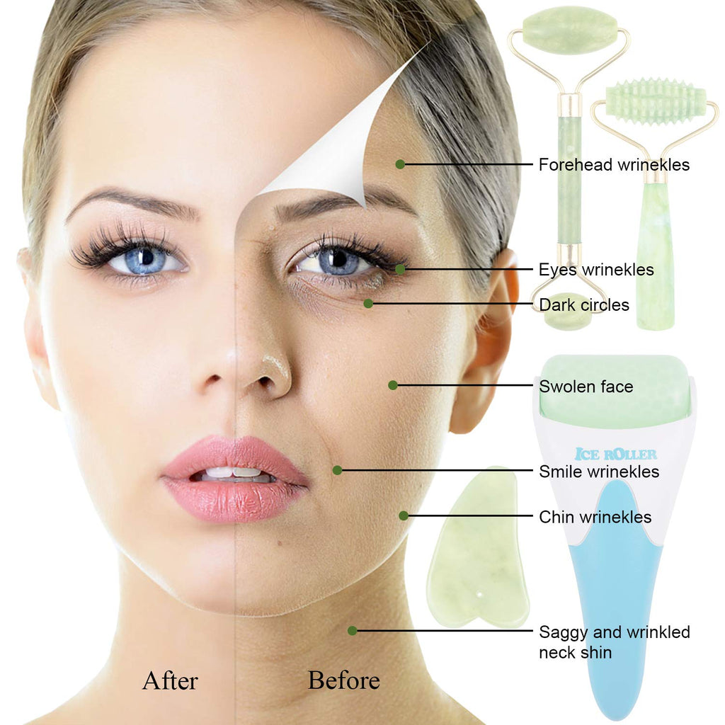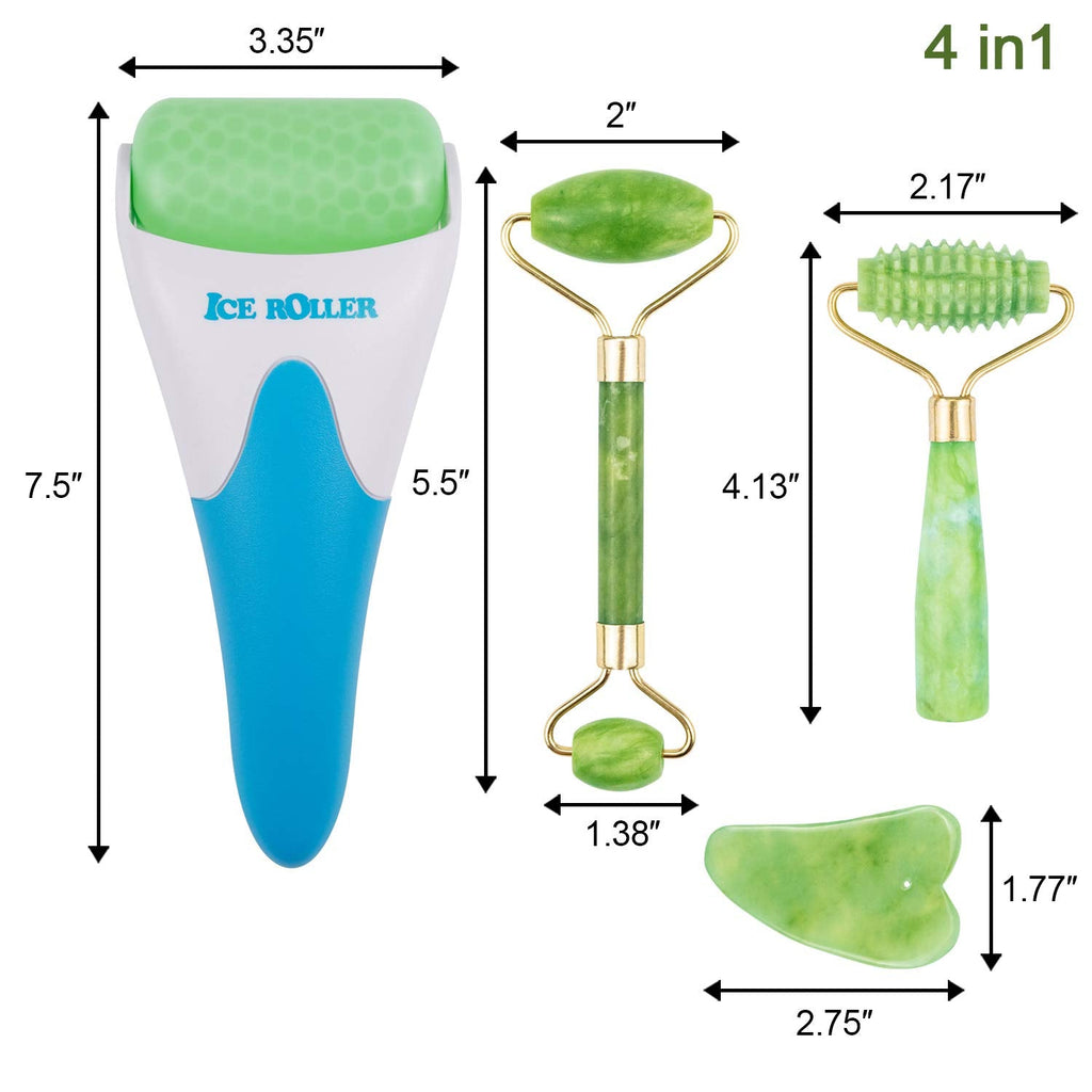 EAONE 4 in 1 Ice Roller Jade Roller Eyes Facial Massage Kits Cold Freezer Therapy Instant Pain Relief Wrinkle Preventing Coolers Skin Roller for Face & Eye Neck Massage Mother's Day Gift