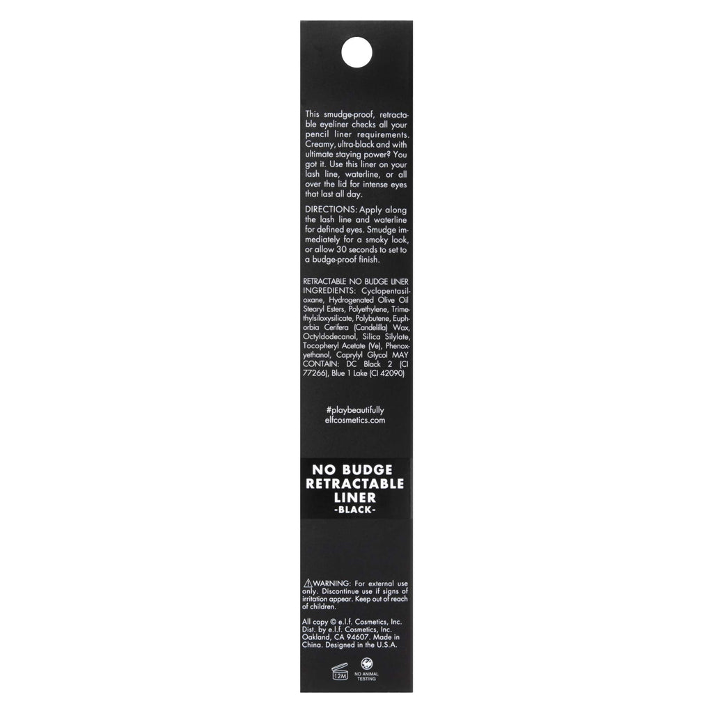 e.l.f. No Budge Retractable Eyeliner, Creamy & Ultra-Pigmented, Waterproof, Creates Bold & Defined Lines, Black, 0.006 Oz (0.18g)