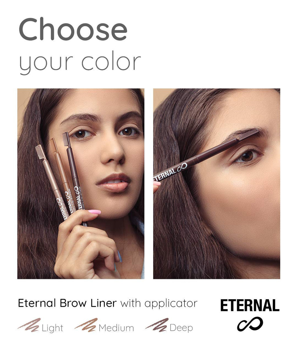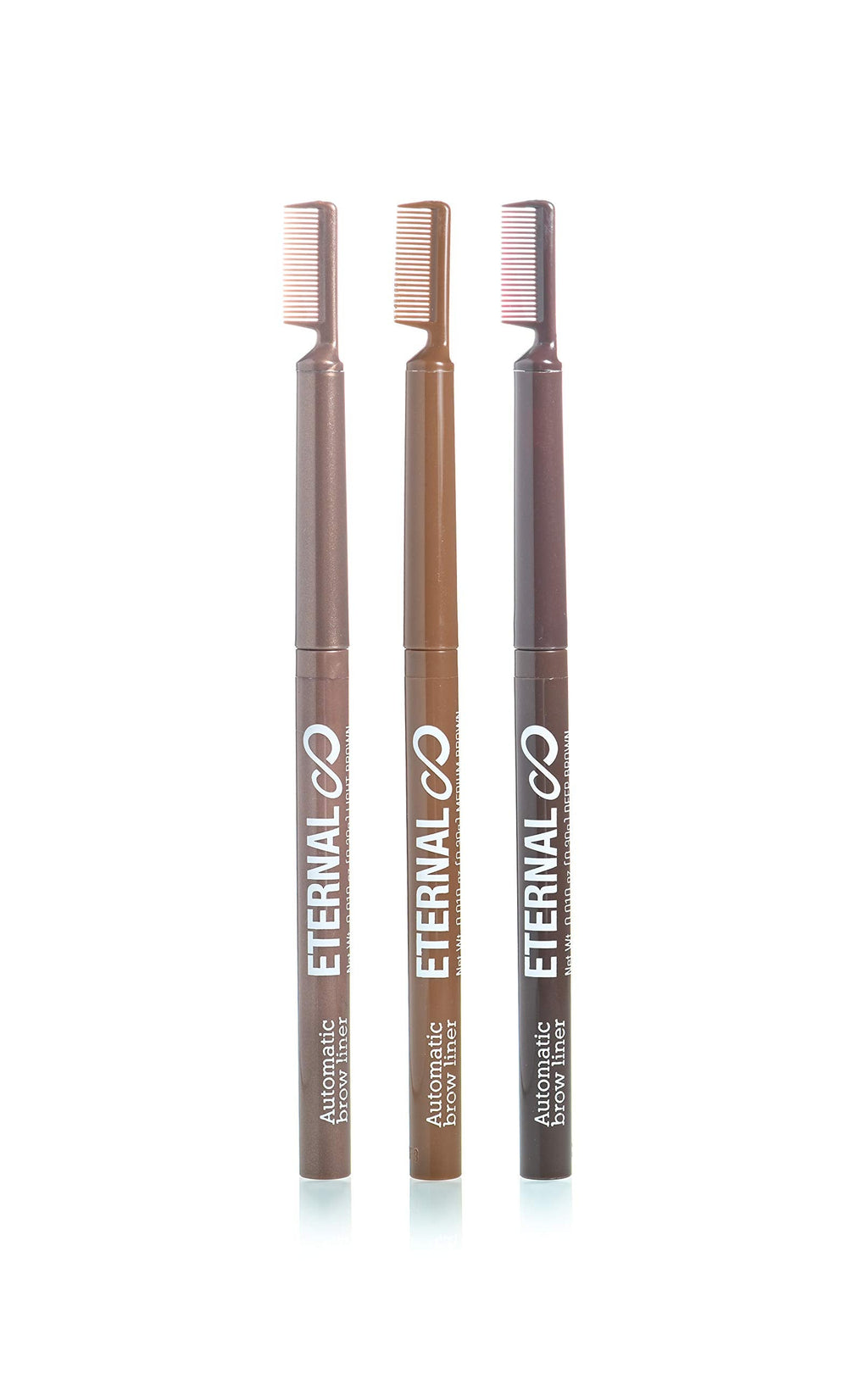 Eternal Automatic Water Resistant Eyebrow Liner Set with Shaping Comb – Long Lasting, Professional and High Precision Brow Definer with No Sharpening, Retractable Twist Up Mechanism (3 Pack)