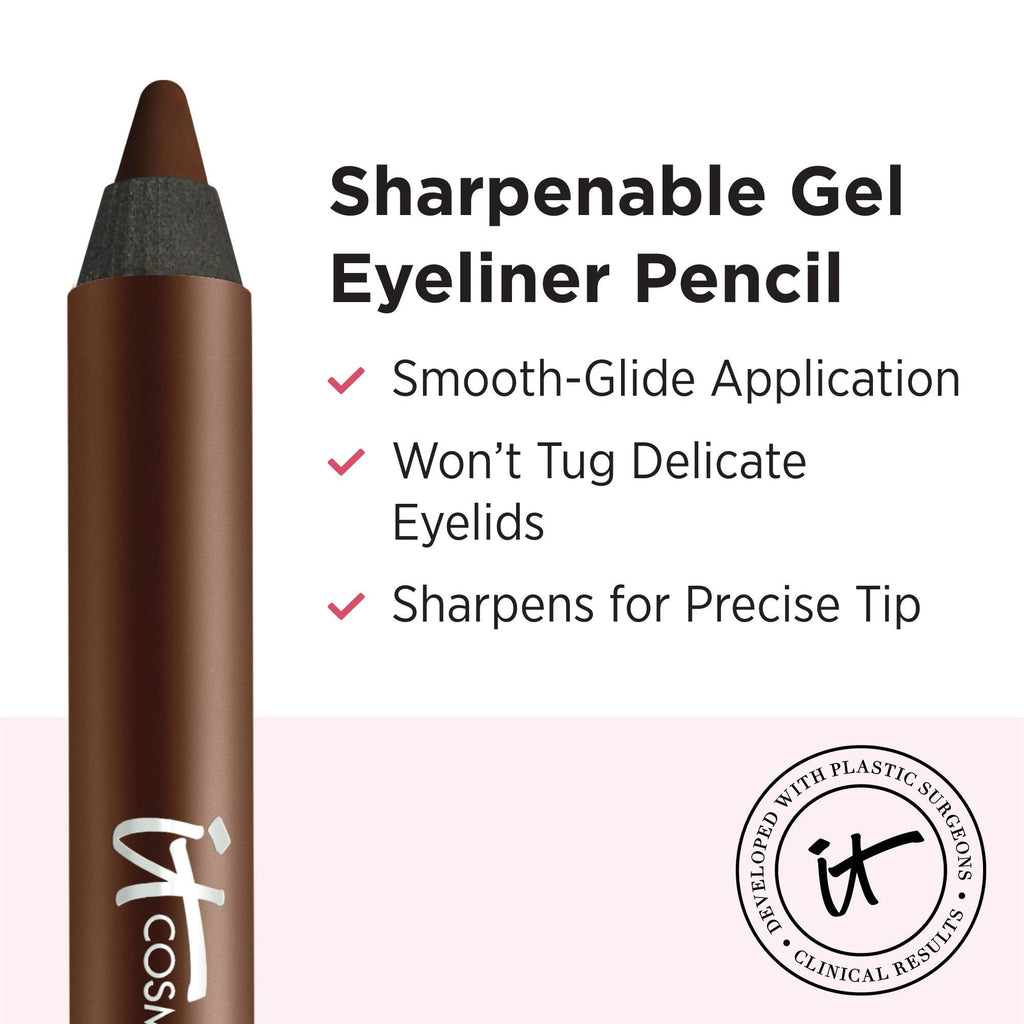IT Cosmetics Superhero No-Tug Gel Eyeliner, Brilliant Brown - Soft Natural Brown - Waterproof, Blendable Formula - Sharpenable Pencil - 0.042 oz