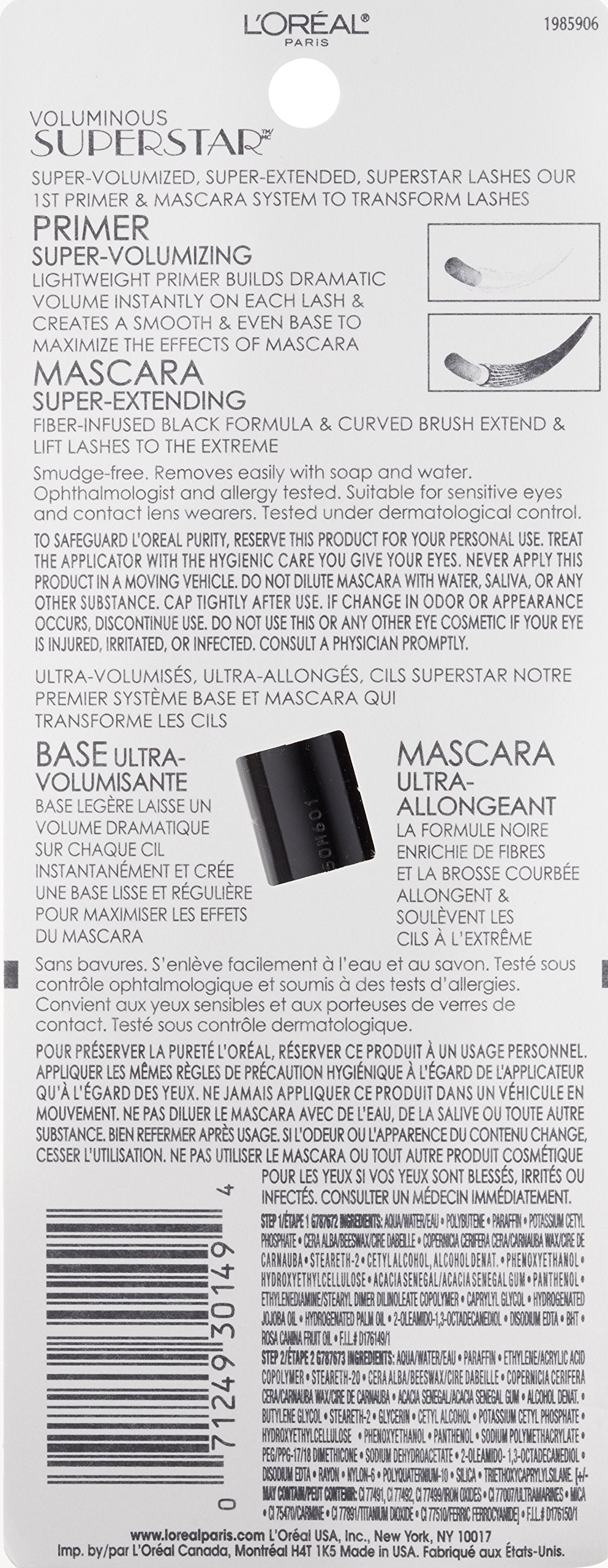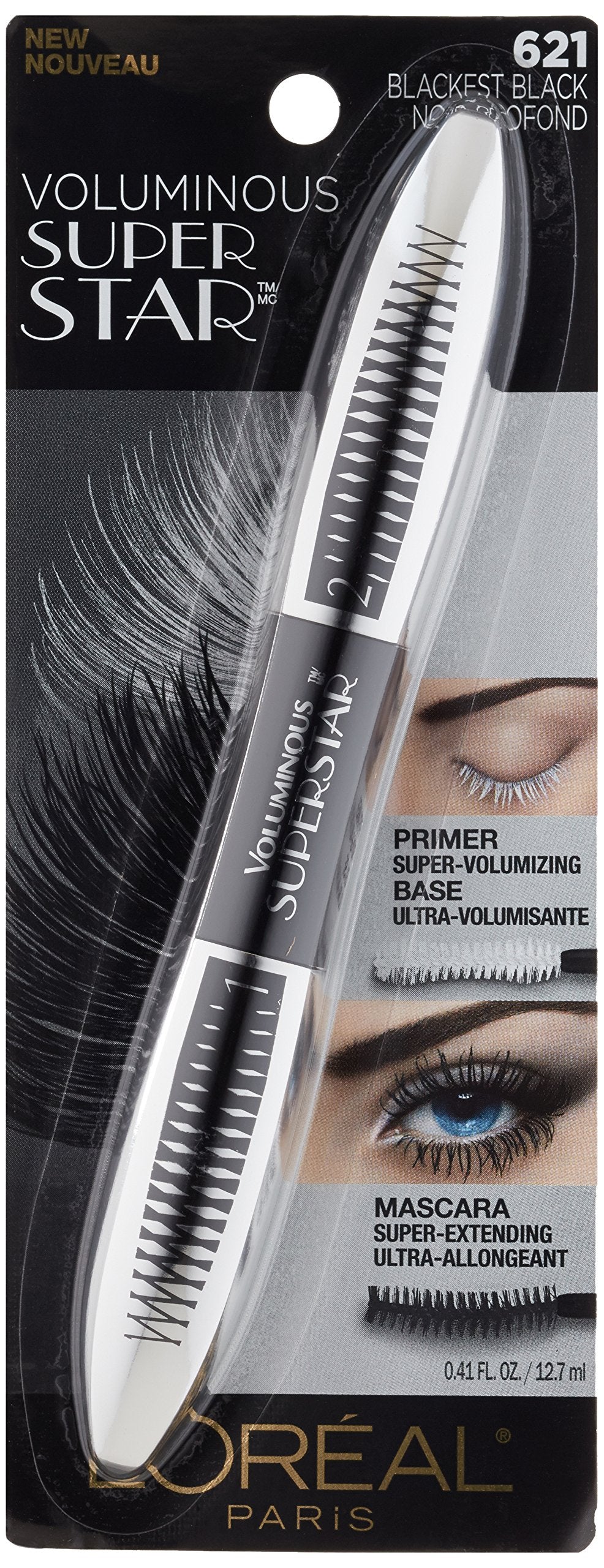 L'Oreal Paris Cosmetics Voluminous Superstar Washable Mascara, Blackest Black, 1 Tube