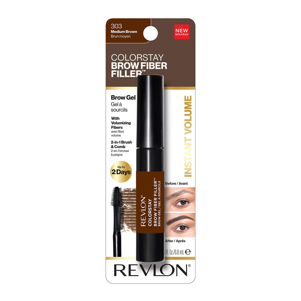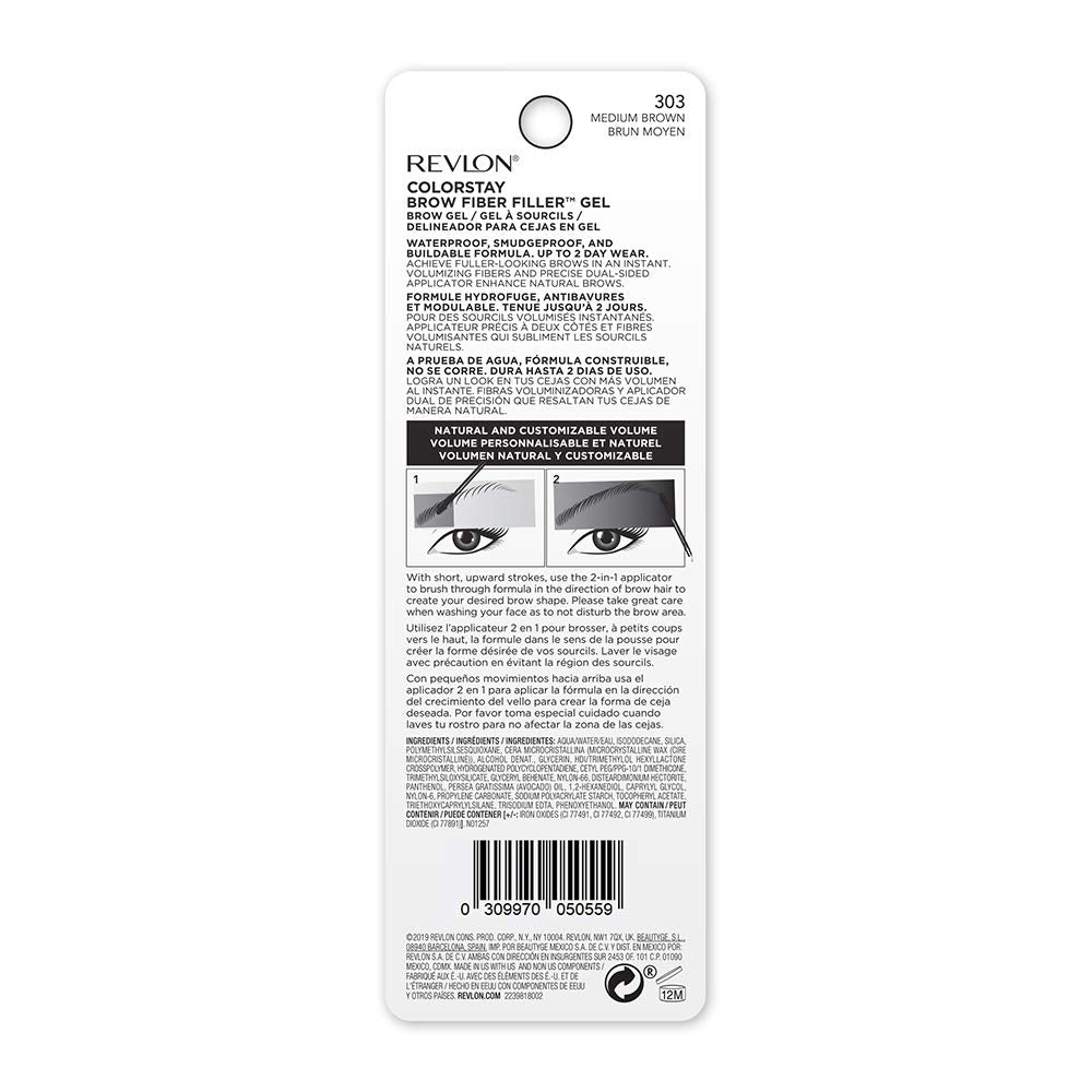 Revlon ColorStay Brow Fiber Filler, Longwearing & Volumizing Waterproof Eyebrow Gel, 303 Medium Brown, 0.23 fl. oz.