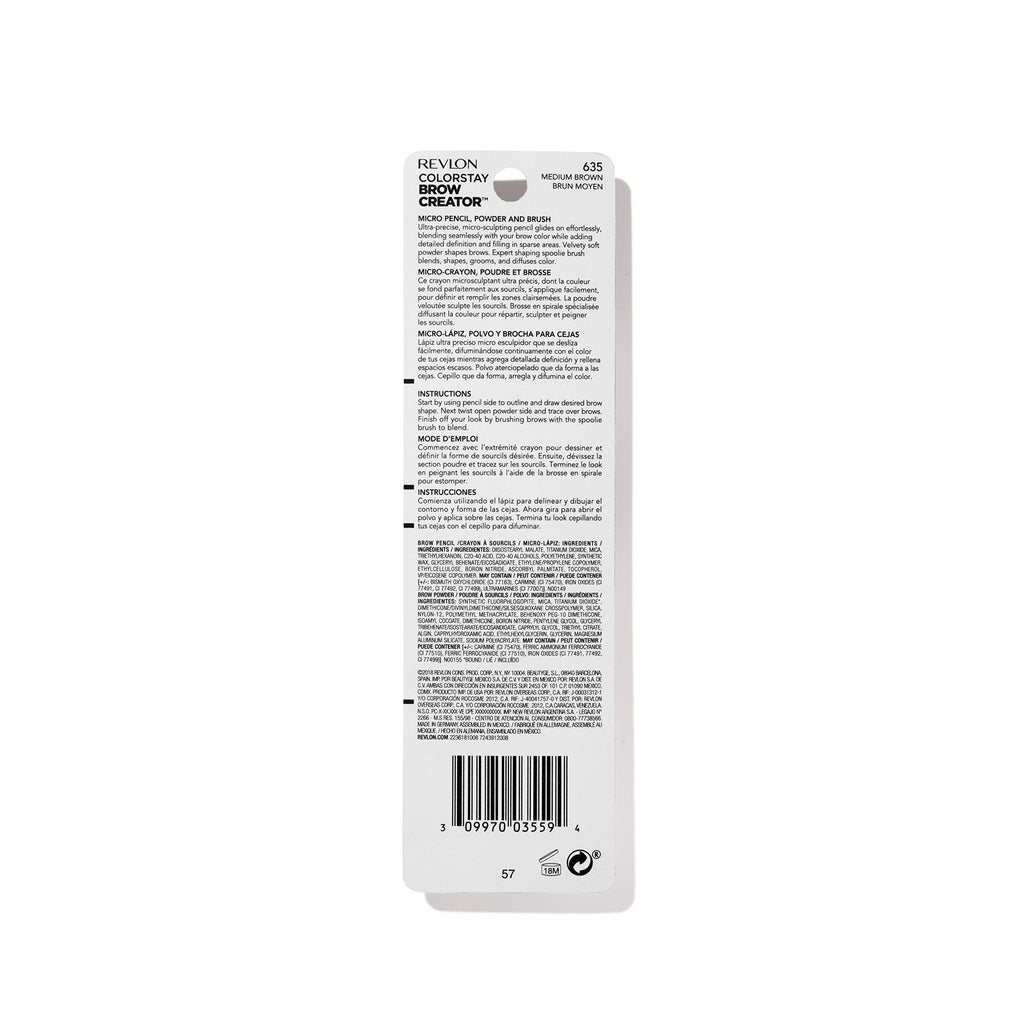Revlon Colorstay Eyebrow Pencil Creator with Powder & Spoolie Brush to Fill, Define, Sculpt, Shape & Diffuse Perfect Brows, Medium Brown (635) 0.23 oz