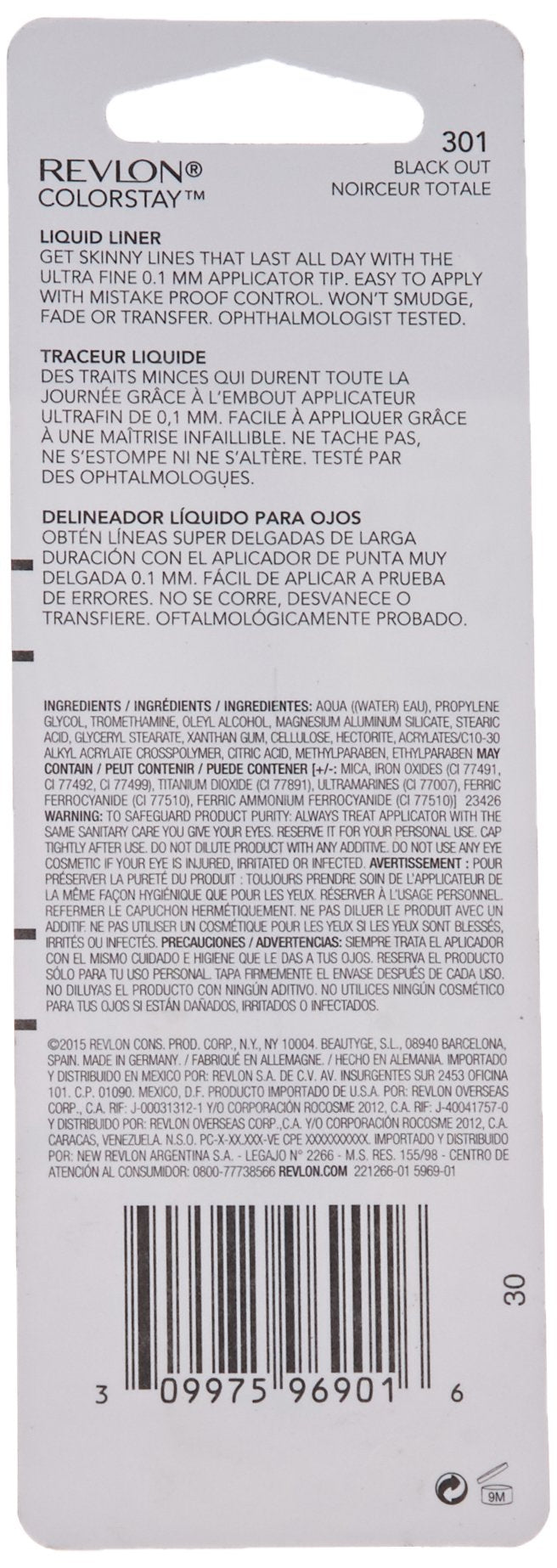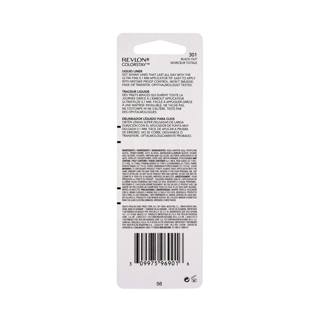 REVLON ColorStay Skinny Liquid Eyeliner, Waterproof, Smudgeproof, Longwearing Eye Makeup with Ultra-Fine Tip, Black Out (301)
