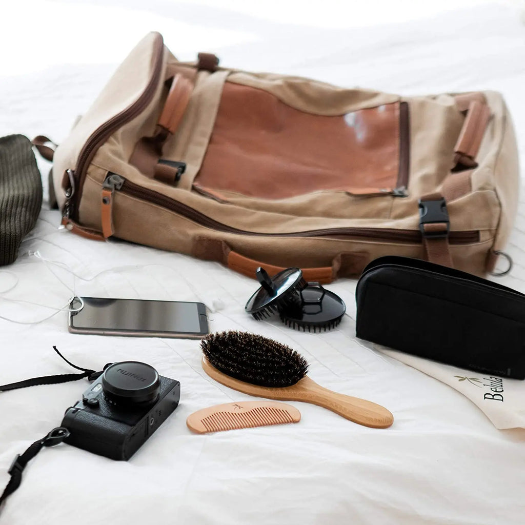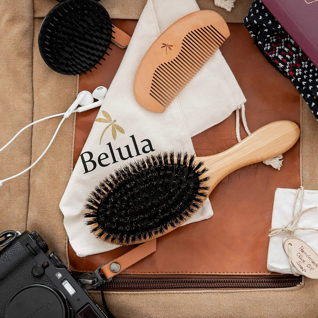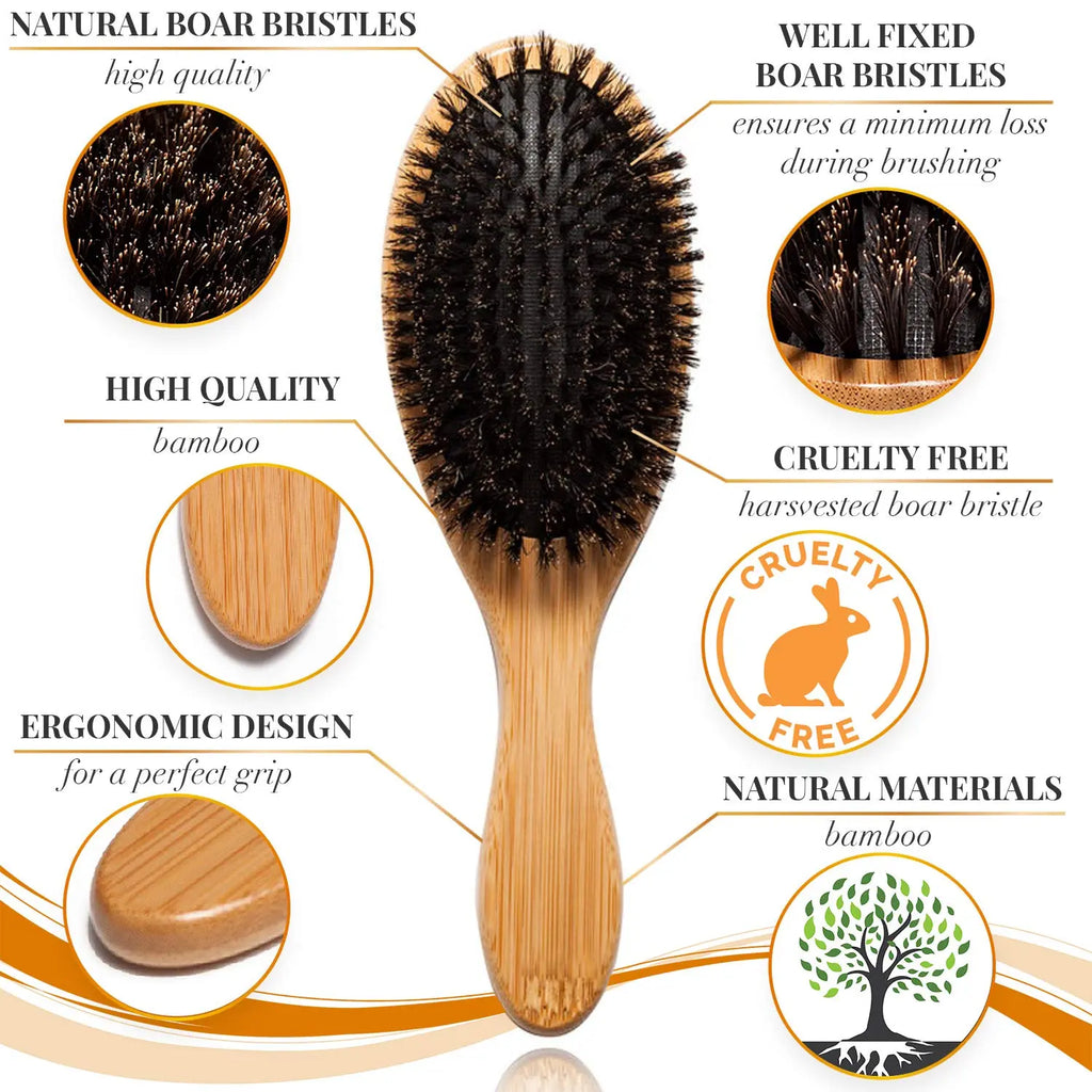 100% Boar Bristle Hair Brush for Men Set. 100% Boar Bristle Brush and Wooden Comb for Men. Free 2 x Palm Brush & Travel Bag Included. Hairbrush for Thin, Normal and Short Hair