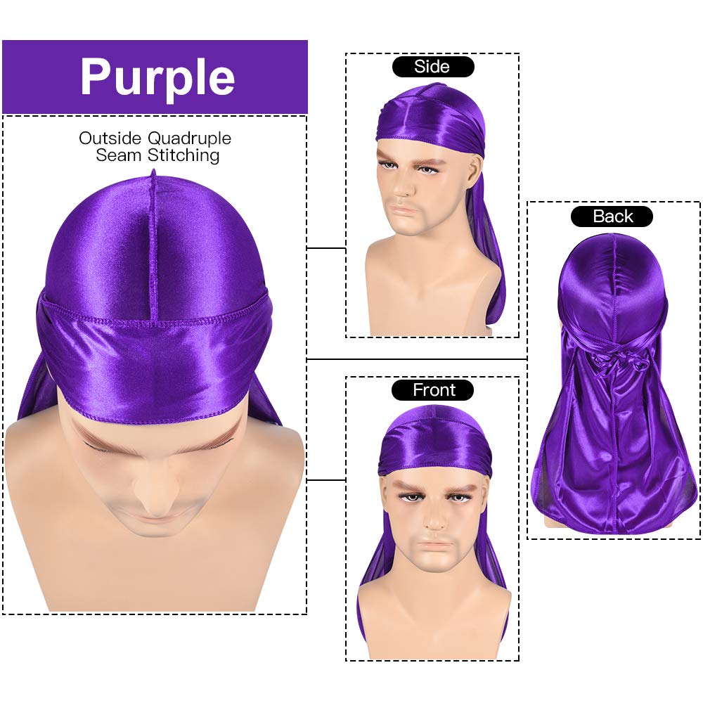 4+2 Silky Durag & Wave Cap Sets, Satin Doo Rags Compression Cap Pack for Men, D