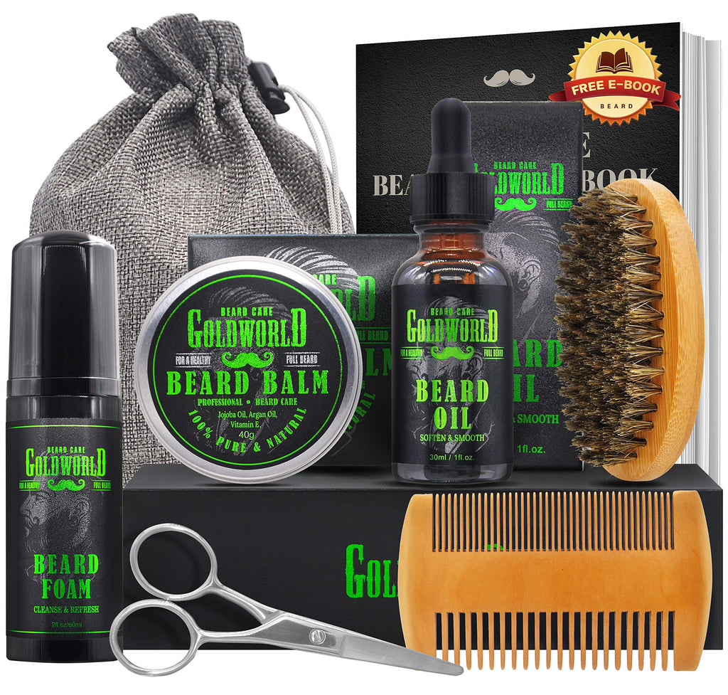 Beard Kit,Beard Growth Kit,Beard Grooming Kit,w/Beard Foam/Shampoo/Wash,Growth Serum,Oil,Balm Conditioner,Brush,Comb,Mustache Scissor,Storage Bag,E-Book,Beard Care&Trimming Kit Gifts for Men Him