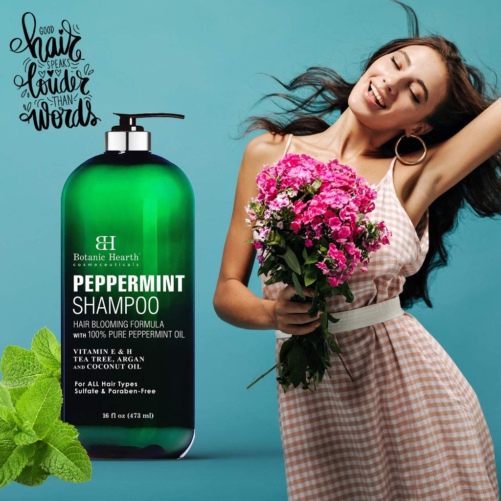 BOTANIC HEARTH Peppermint Oil Shampoo - Hair Blooming Formula with Keratin for Thinning Hair - Fights Hair Loss, Promotes Hair Growth - Sulfate Free for Men and Women - 16 fl oz