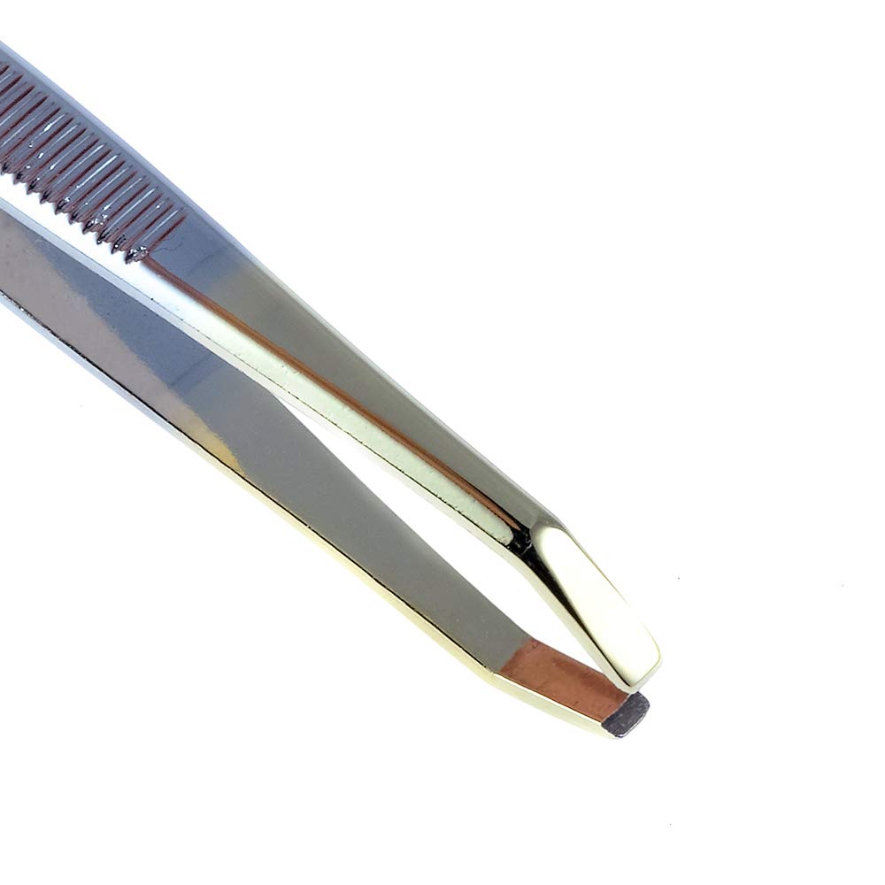 Camila Solingen CS30 3.5 Inches Gold Tipped, Surgical Grade, German Stainless Steel Tweezers (Claw) - Flawless Eyebrow and Facial Hair Shaping and Removal for Men/Women