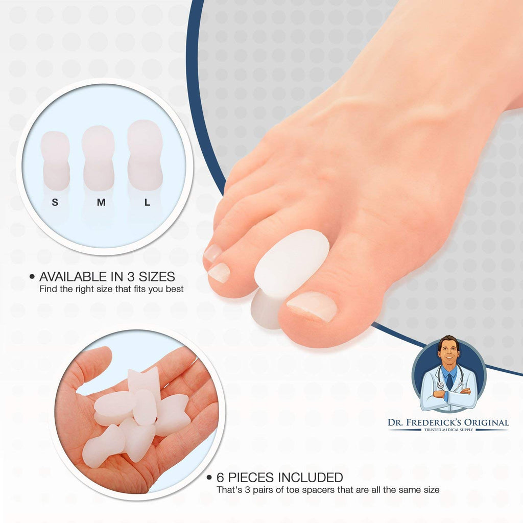 Dr. Frederick's Original Gel Toe Separators - Bunion Pain Relief for Men & Women - 6 Pieces - Large