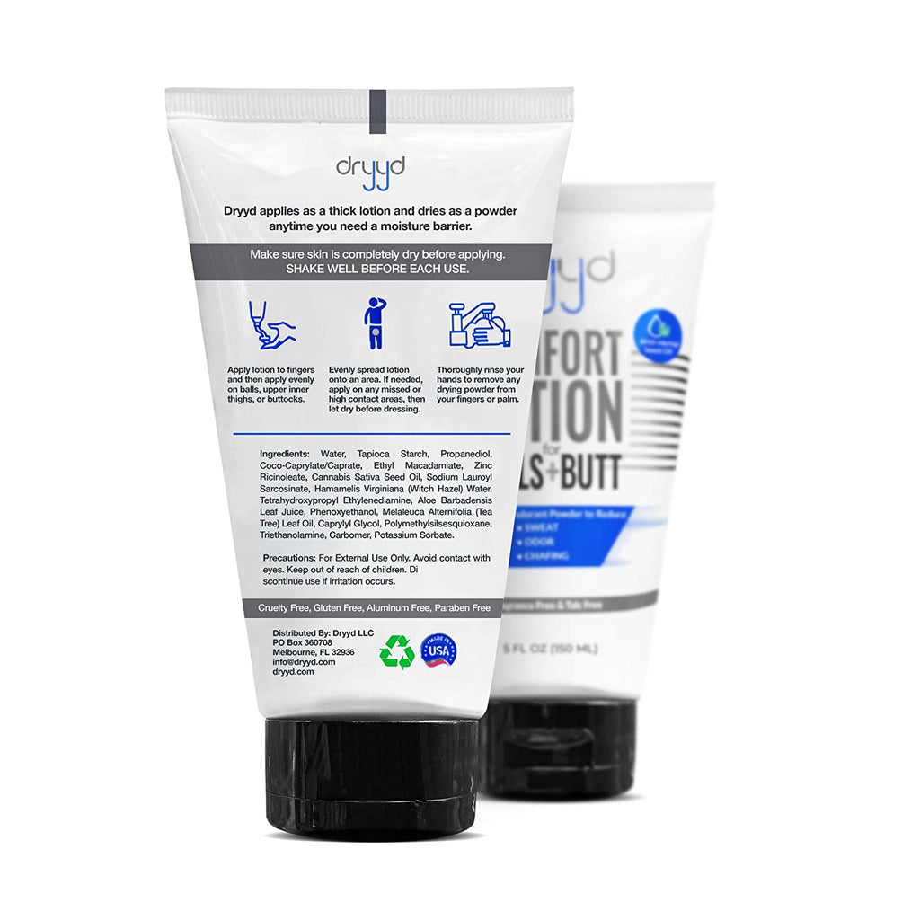 DRYYD Mens Deodorant Antiperspirant Lotion, Anti Chafing, Talcum Powder Free with Hemp Seed Oil, Ball Deodorant For Men, Reduce Sweaty Groin, Anti Itch, Balls & Butt, Stay Fresh, Fragrance Free, 5oz