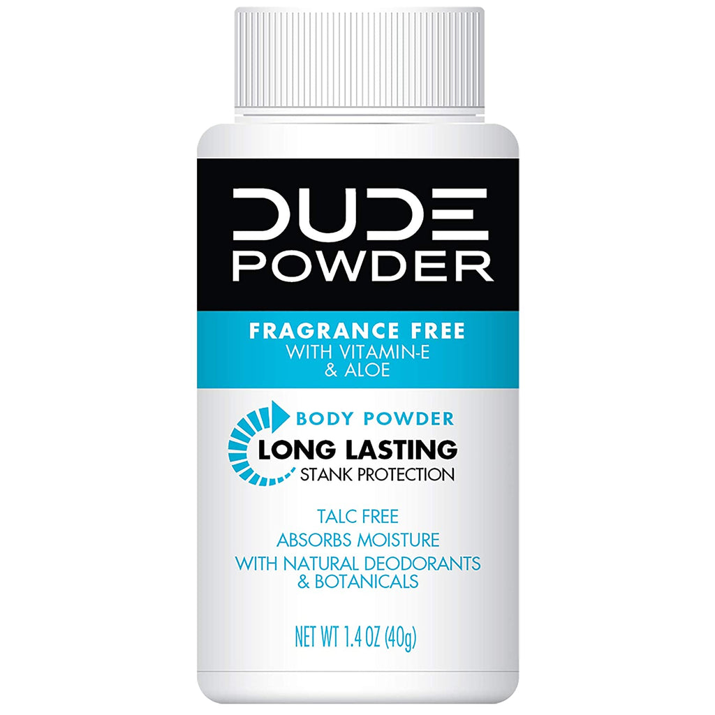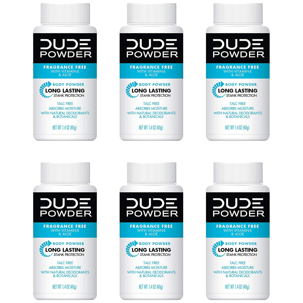 Dude Products Body powder travel size, fragrance free 1.5 ounce bottles for men, 6 Count