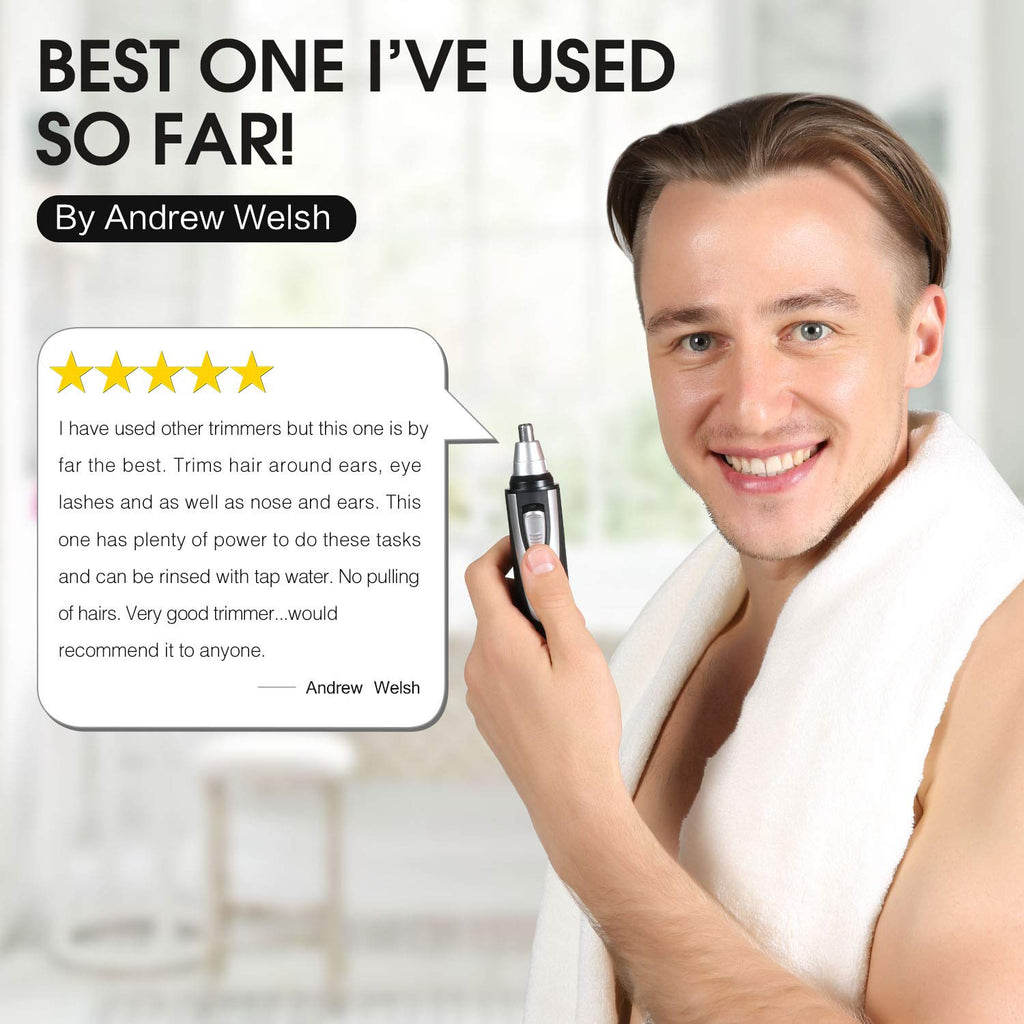 Ear and Nose Hair Trimmer Clipper - 2021 Professional Painless Eyebrow & Facial Hair Trimmer for Men Women, Battery-Operated Trimmer with IPX7 Waterproof, Dual Edge Blades for Easy Cleansing Black
