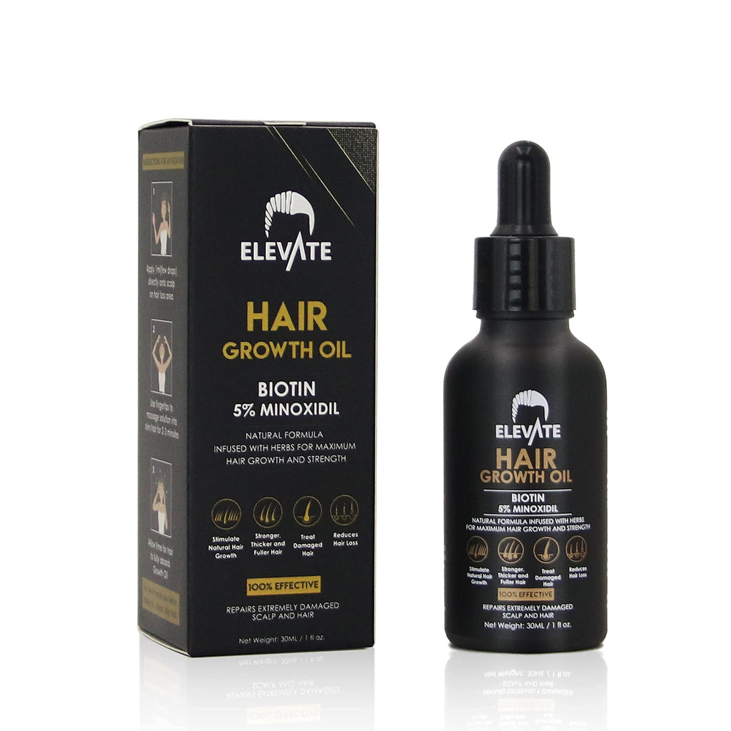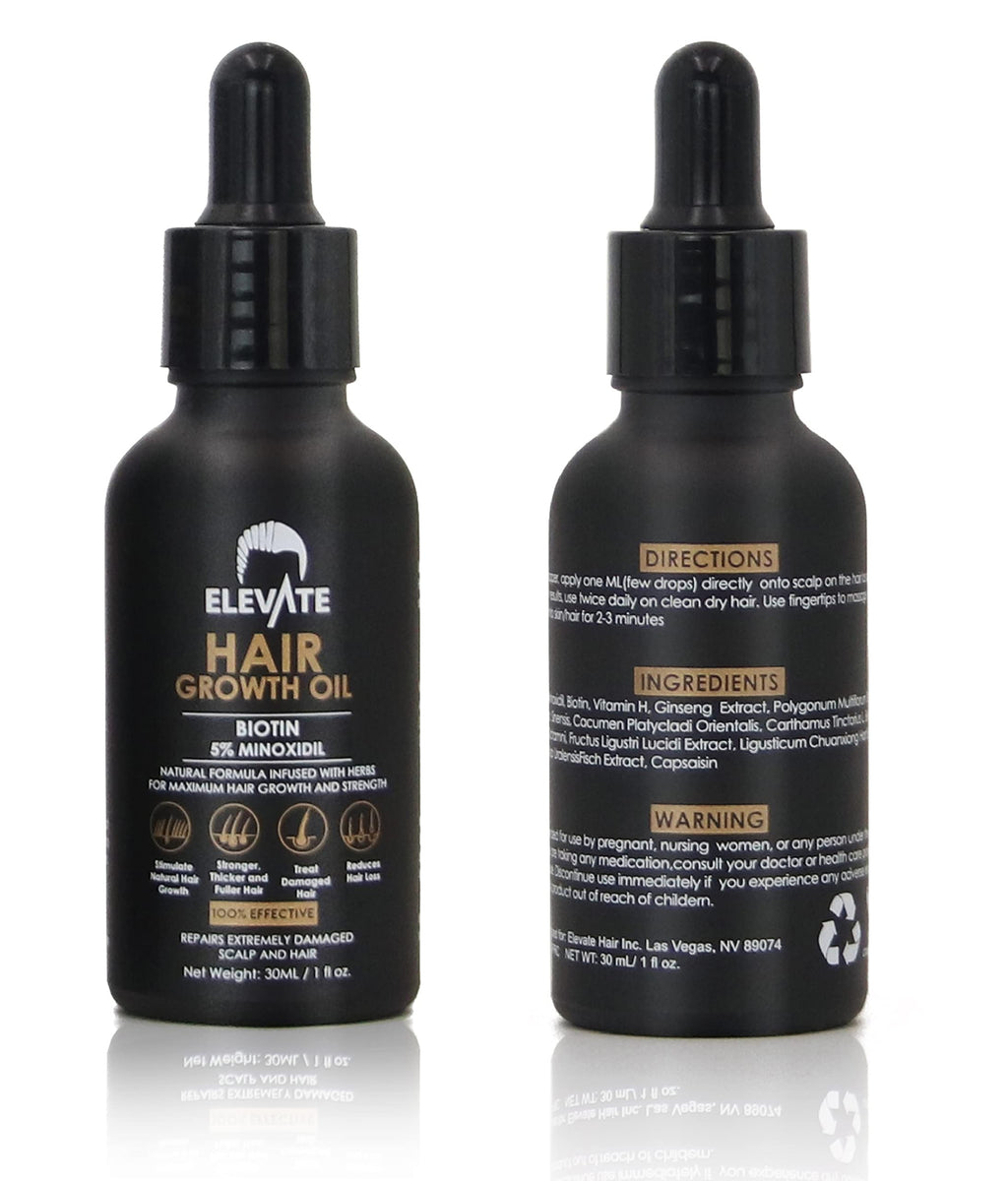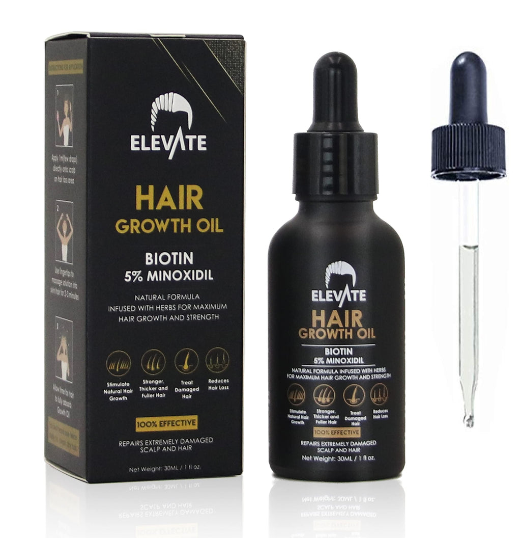 ELEVATE Hair Growth Oil - Biotin Hair Growth Serum & 5% Minoxidil Treatment for Stronger Thicker Longer Hair – Natural Hair Growth Thickening Treatment - Stop Thinning & Hair Loss for Men & Women 1oz