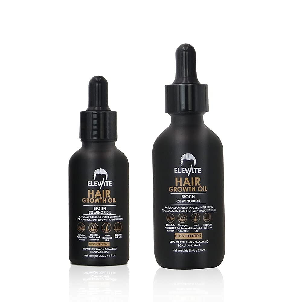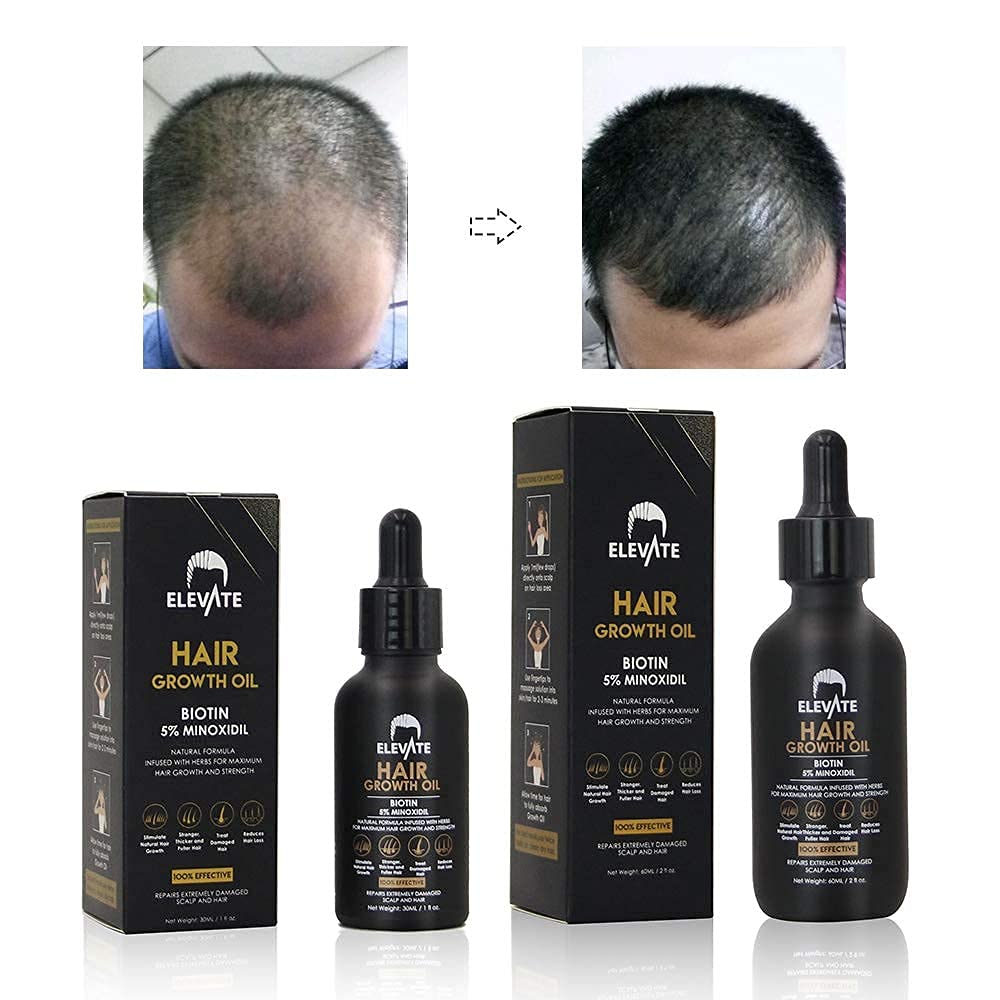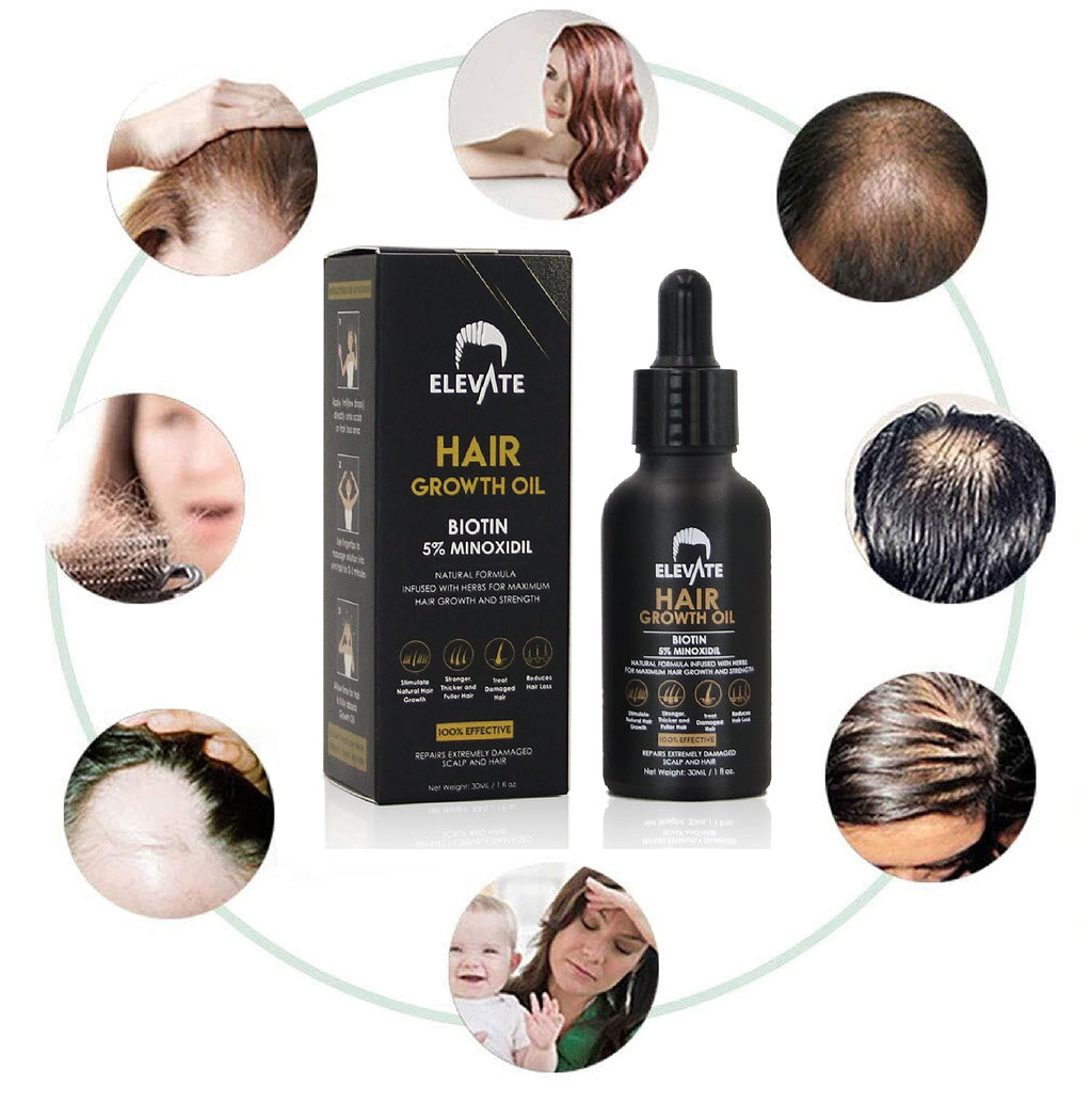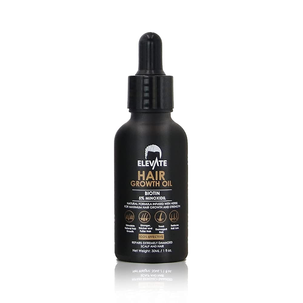 ELEVATE Hair Growth Oil - Biotin Hair Growth Serum & 5% Minoxidil Treatment for Stronger Thicker Longer Hair – Natural Hair Growth Thickening Treatment - Stop Thinning & Hair Loss for Men & Women 1oz