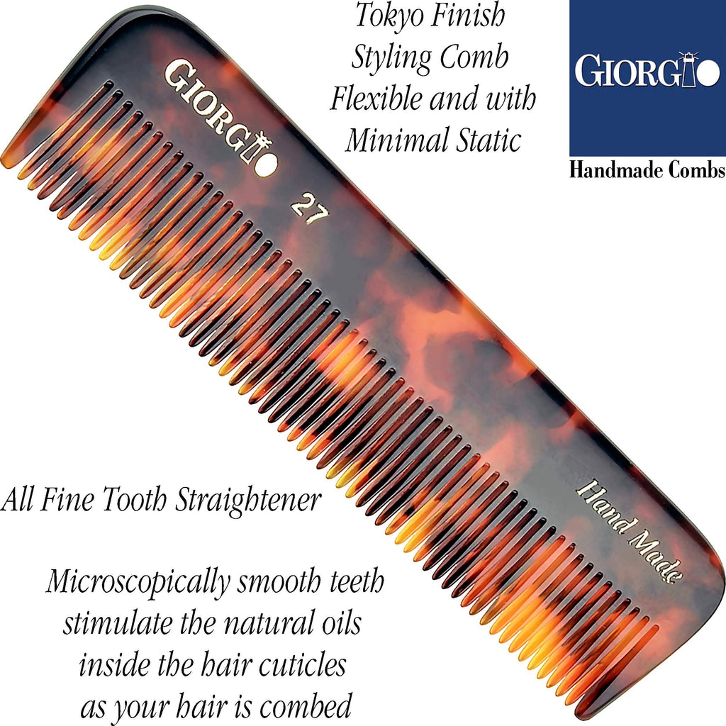 Giorgio G27 Handmade All Fine Tooth Pocket Comb, Hair Comb Straightener for Everyday Grooming Styling Hair, Mustache and Beard for Men Women and Kids, Use Dry or with Balms, Saw Cut and Polished