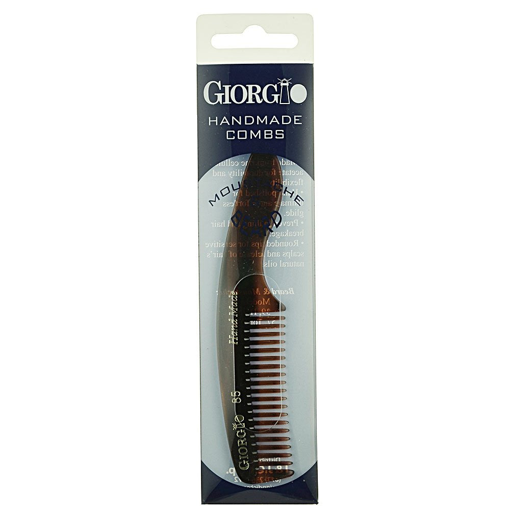 Giorgio G85 Travel Size Mustache and Beard Comb for Men - Small Fine Tooth Pocket Comb for Everyday Hair Care - Sawcut and Hand Polished Pocket Comb and Styling Comb - Italian Handmade Tortoise Comb