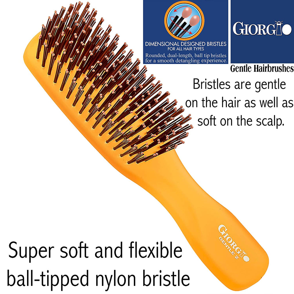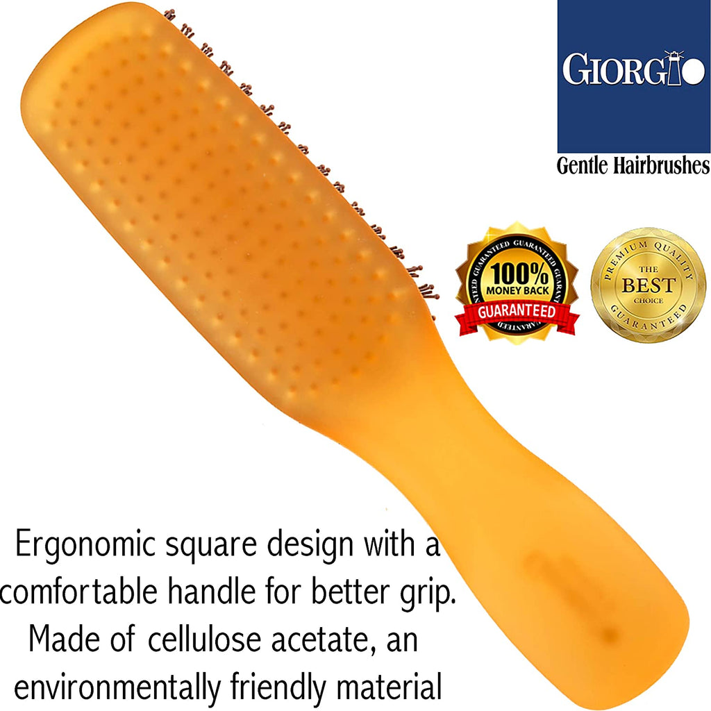 Giorgio GION2O Neon Orange 6.25 inch Gentle Touch Detangler Hair Brush for Men and Women. Soft Bristles for Sensitive Scalp. Wet and Dry for all Hair Types. Scalp Massager Brush Stimulate Hair Growth