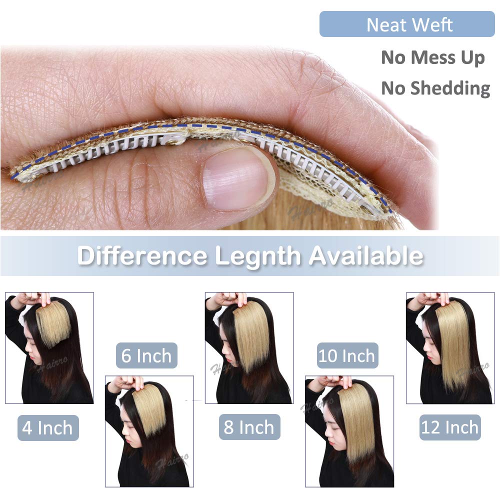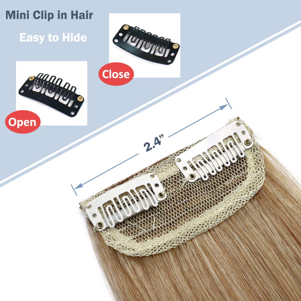 Hairro Seamless Clip in Mini Hairpiecs 10 Inch 100% Human Hair Extensions for Men and Women Adding Volume Highlight #12/613 Golden Brown Mix Bleach Blonde Clip on Straight Wiglet Hair Filler