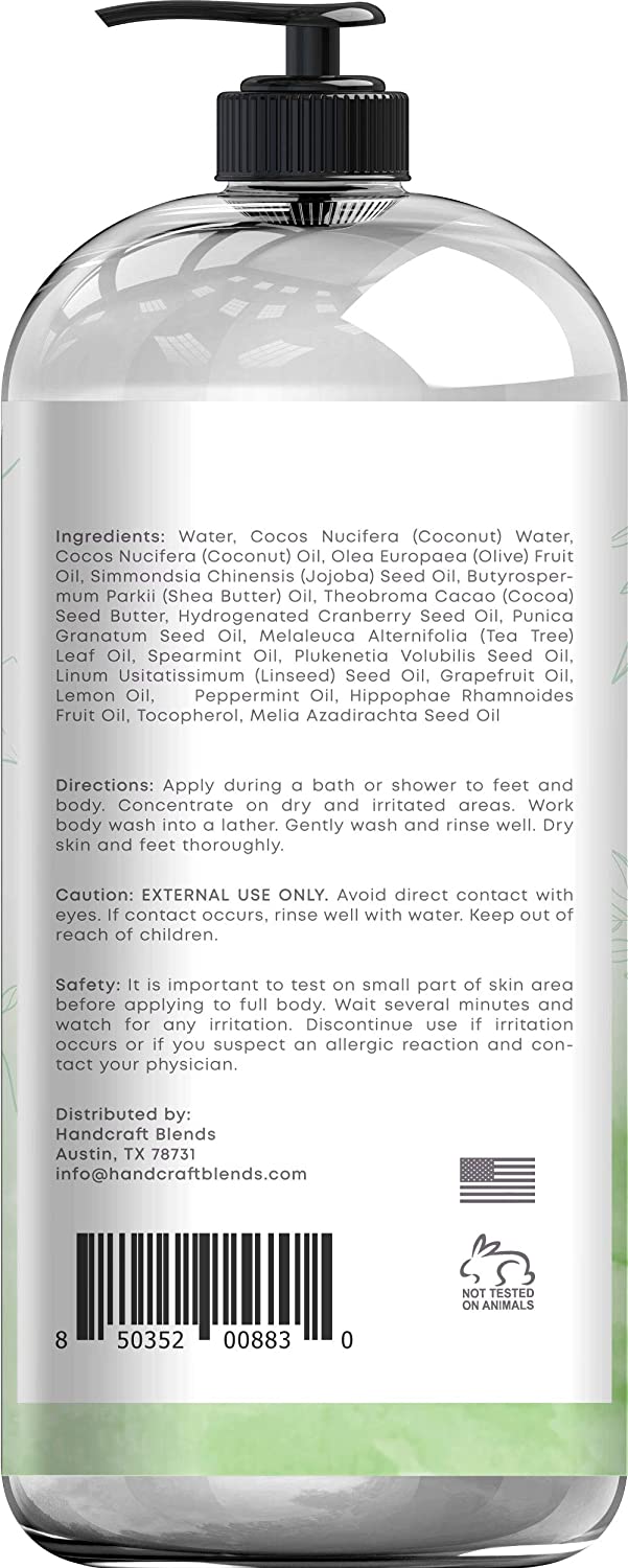 Handcraft Tea Tree Mint Body Wash 16 oz - Extra Strength Body Wash For Athletes Foot, Nail Fungus, Itchy Skin, Jock Itch, Acne and Eczema - Tea Tree Mint Body Wash For Men & Women