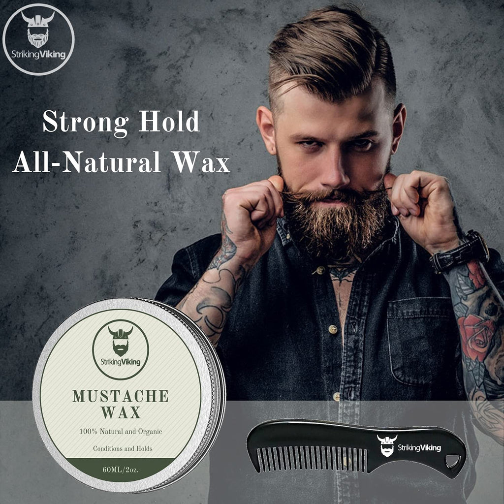 Mustache Wax and Comb Kit - Beard and Moustache Wax for Men with Strong Hold Natural Beeswax - Helps Tame, Style, and Groom (Vanilla Scent) - Striking Viking
