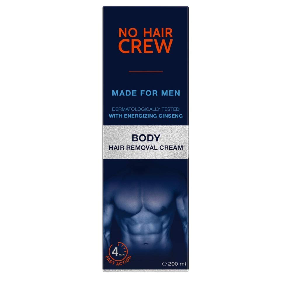 No Hair Crew Body At Home Hair Removal Cream for Manscaping Unwanted Hair with Energizing Ginseng, Premium Depilatory, Painless & Flawless, Made for Men, 200ml