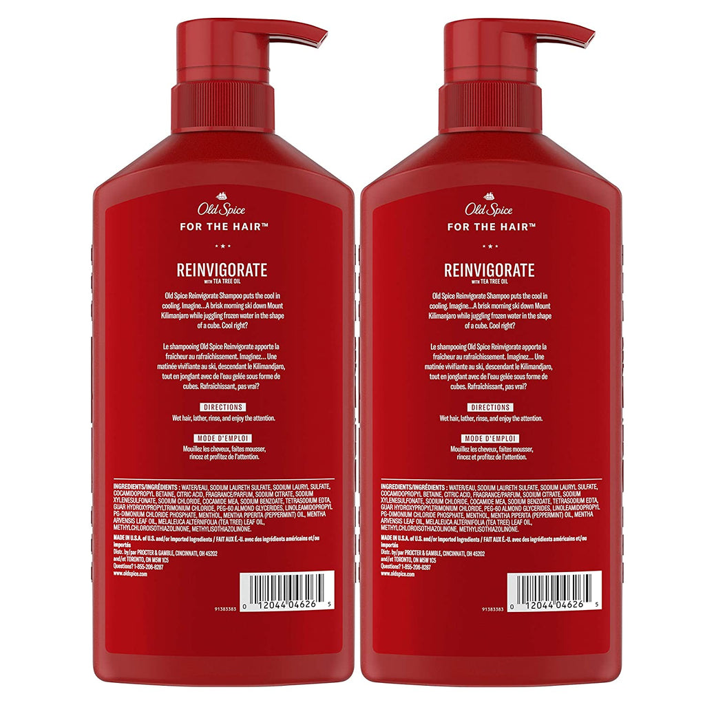 Old Spice Reinvigorate Shampoo for Men with Tea Tree Oil, 21.9 Oz Each, Twin Pack