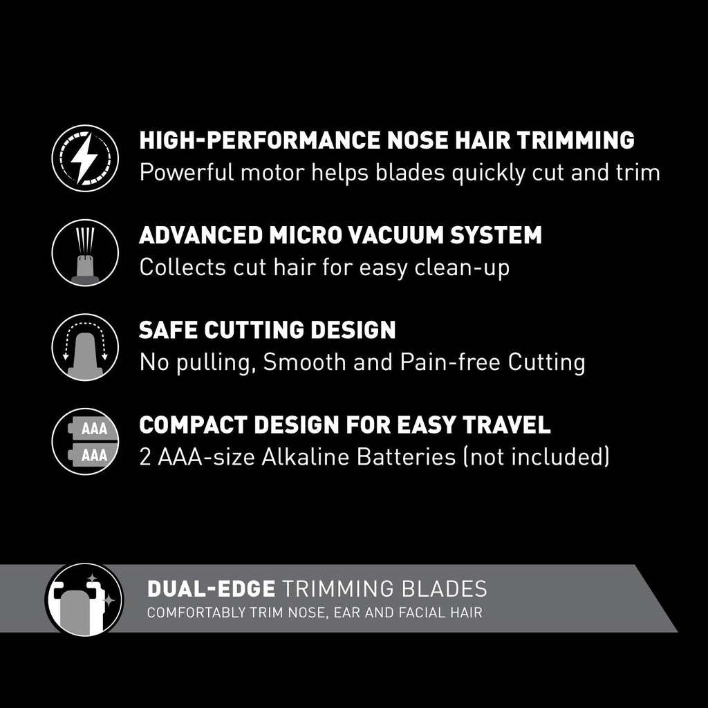 Panasonic Ear and Nose Hair Trimmer for Men with Vacuum Cleaning System, Powerful Motor and Dual-Edge Blades for Smoother Cutting, Wet/Dry – ER-GN70-K (Black)