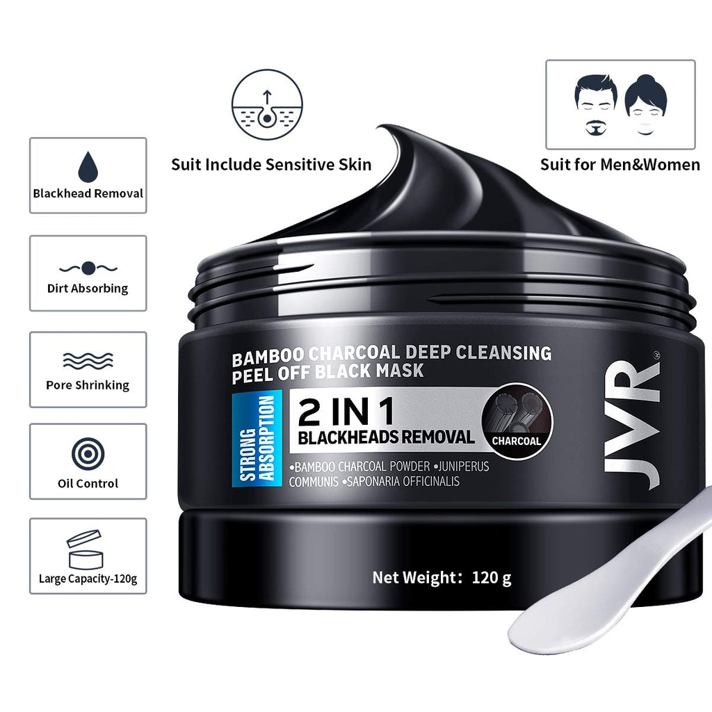 Peel Off Face Mask, JVR Blackhead Remover Mask for Men, Women, Charcoal Peel Off Black Mask, Facial Mask Purifying and Deep Cleansing for All Skin Types 4.23 OZ