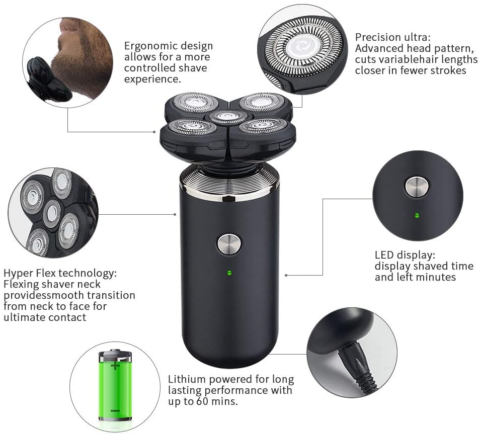 Tiklean Electric Razor for Men, Head Shaver for Bald Men, Wet & Dry Rotary Shavers, Cordless, Waterproof, USB Charging, Rechargeable