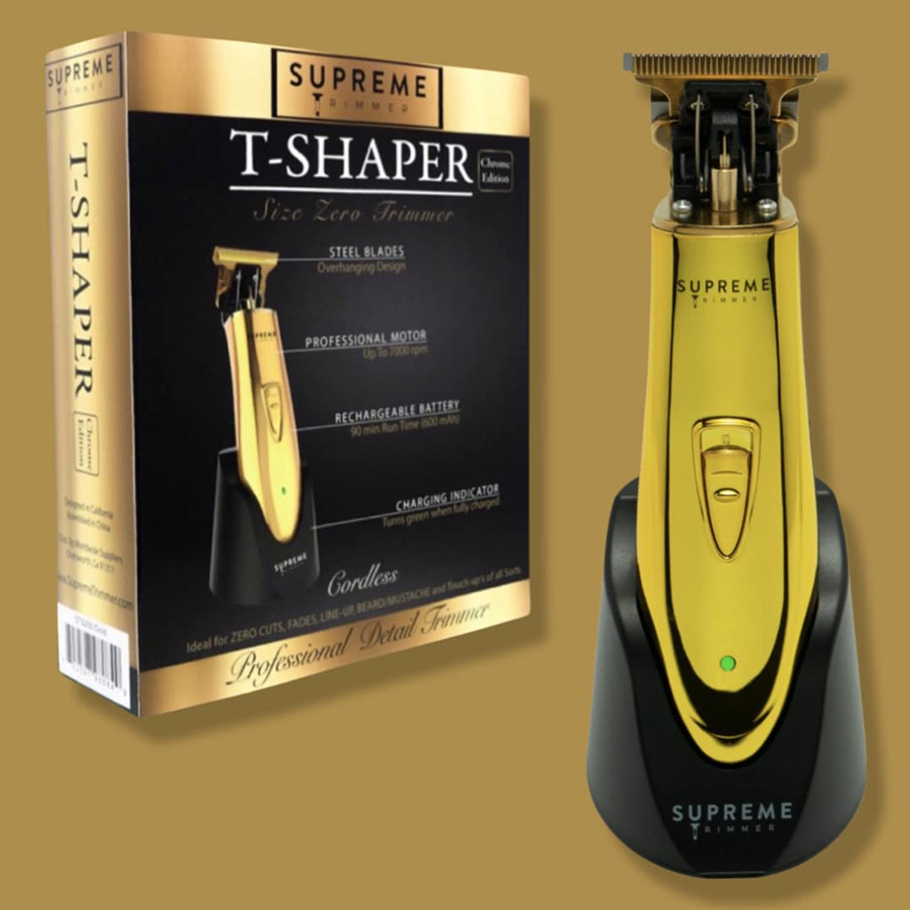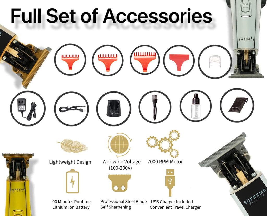 Trimmer for Men by SUPREME TRIMMER Professional Barber Hair Clipper Mustache Beard Groomer Cordless Travel Trimmer LED & Stand - ST5200 Gold T-Shaper Li