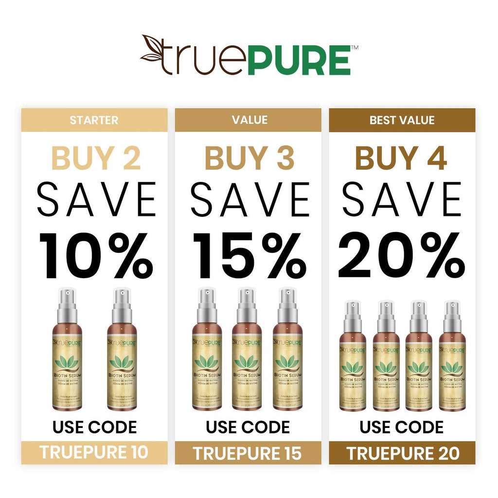 TruePure Biotin Hair Growth Serum - Hair Loss Prevention Treatment For Men & Women With Fine, Thinning Hair - Fragrance Free & Sulfate Free DHT Blocking Hair & Beard Growth Formula, 2oz