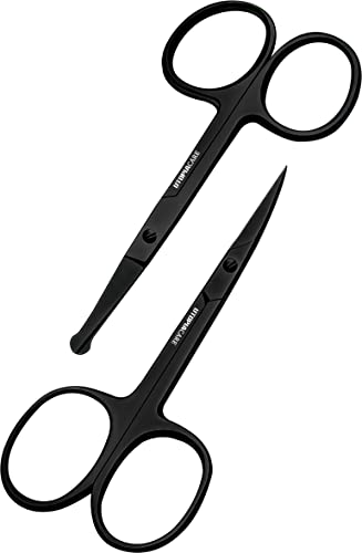 Utopia Care Curved and Rounded Facial Hair Scissors for Men - Mustache, Nose Hair & Beard Trimming Scissors, Safety Use for Eyebrows, Eyelashes & Ear Hair-Professional Stainless Steel (Black)