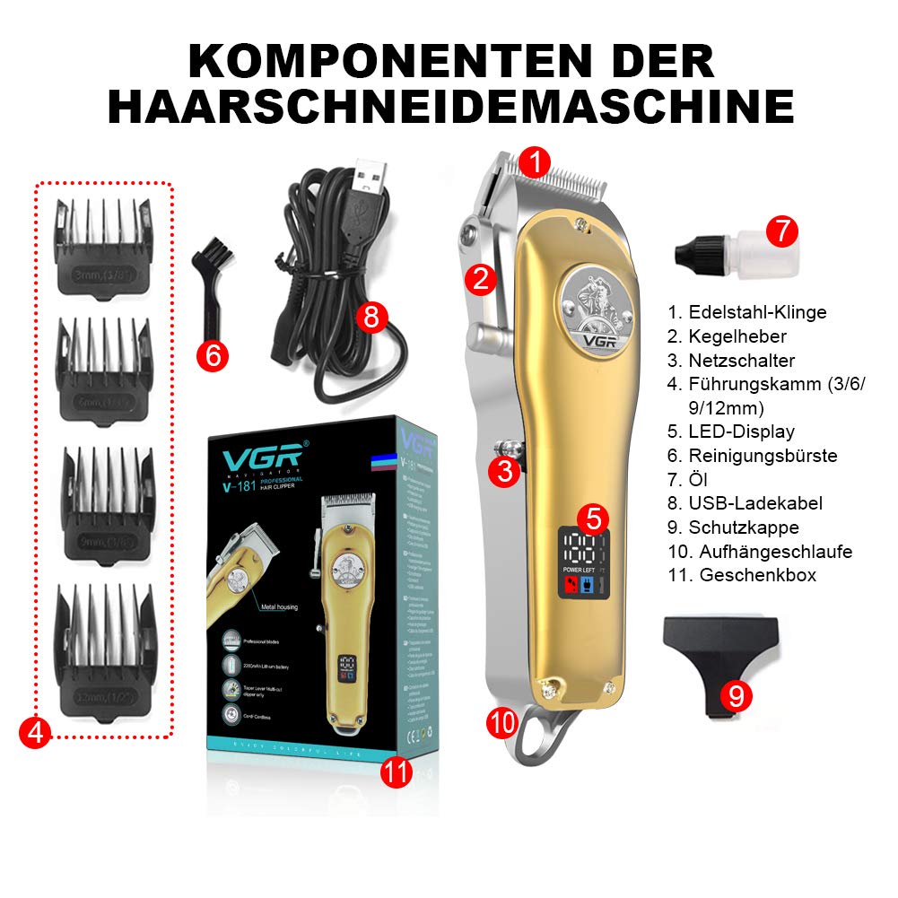 VGR Hair Clippers, Professional Hair Cutting Kit for Men, USB Cord/Cordless Rechargeable Hair Trimmer Set with LED Display, Model V-181