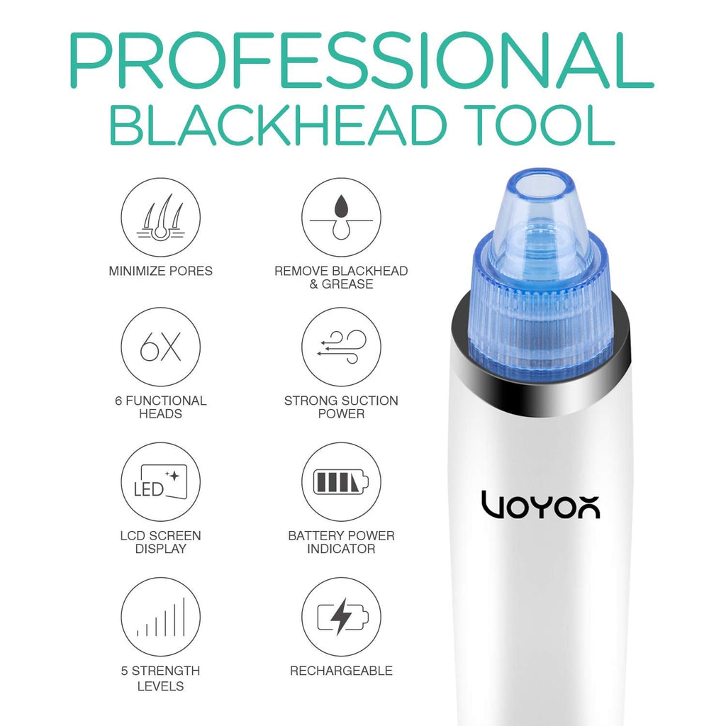 VOYOR Blackhead Remover Pore Vacuum - Blackheads Remover Tools Electric Face Vacuum Pore Cleaner Acne Whiteheads Extractor with 6 Suction Heads and 5 Suction Levels for Men and Women BR510