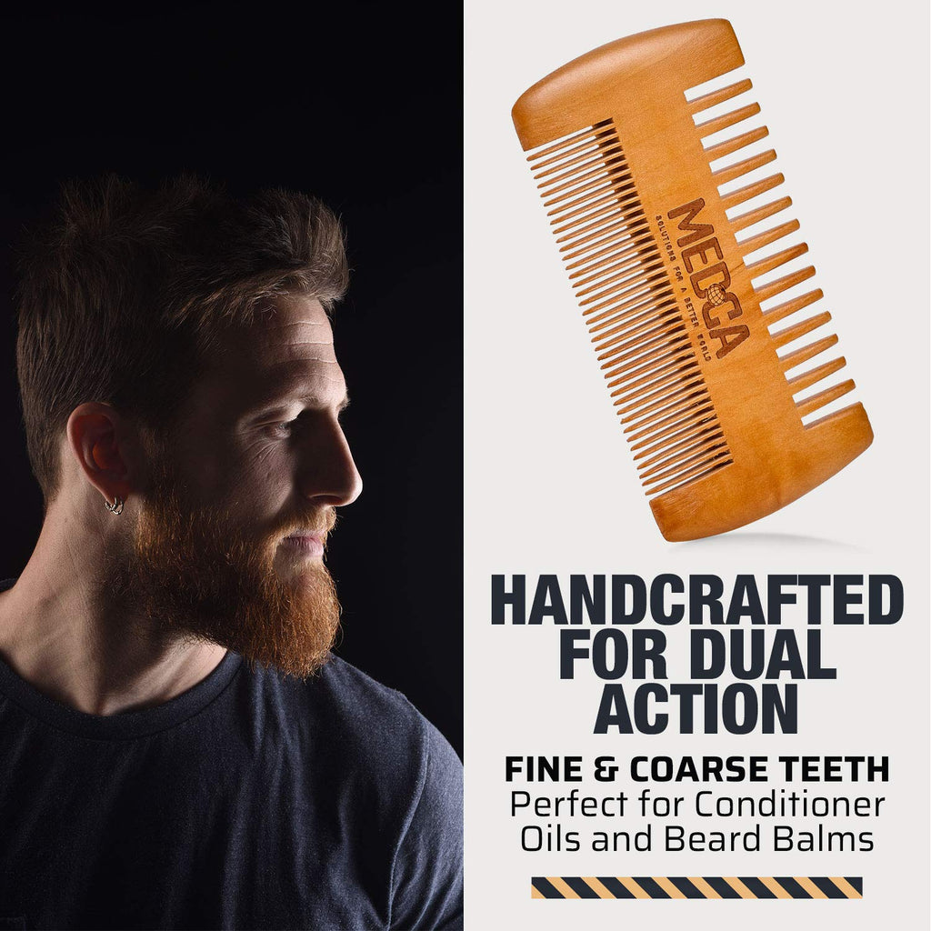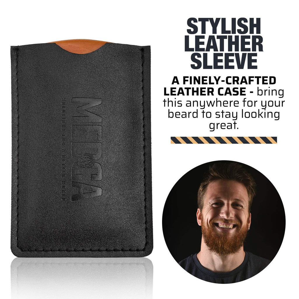 Wooden Beard Comb with Leather Case - Handcrafted Solid Beechwood Beard, Mustache and Head Hair Pocket Combs for Men Dual Action Fine & Coarse Teeth Perfect for Conditioner Oils and Beard Balms
