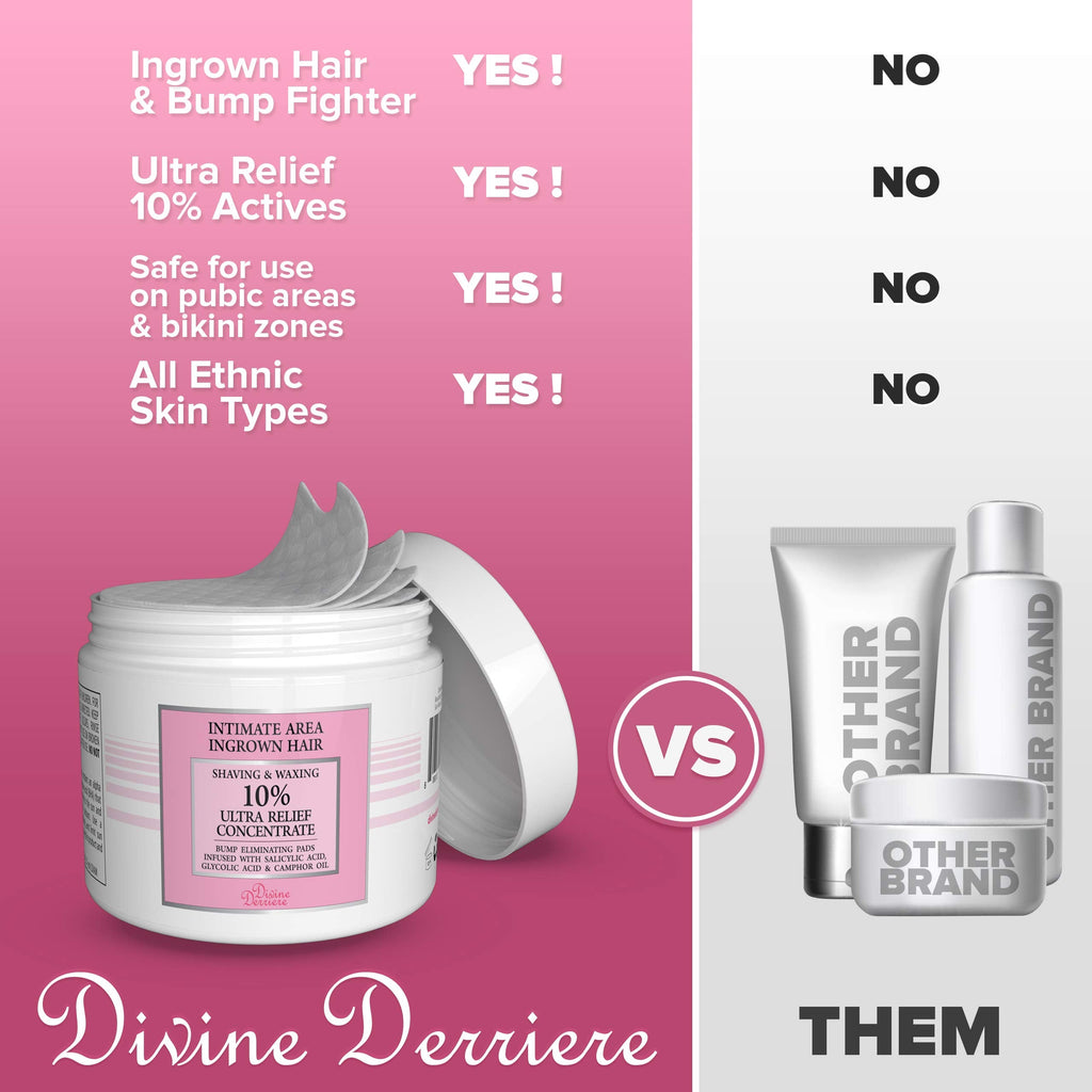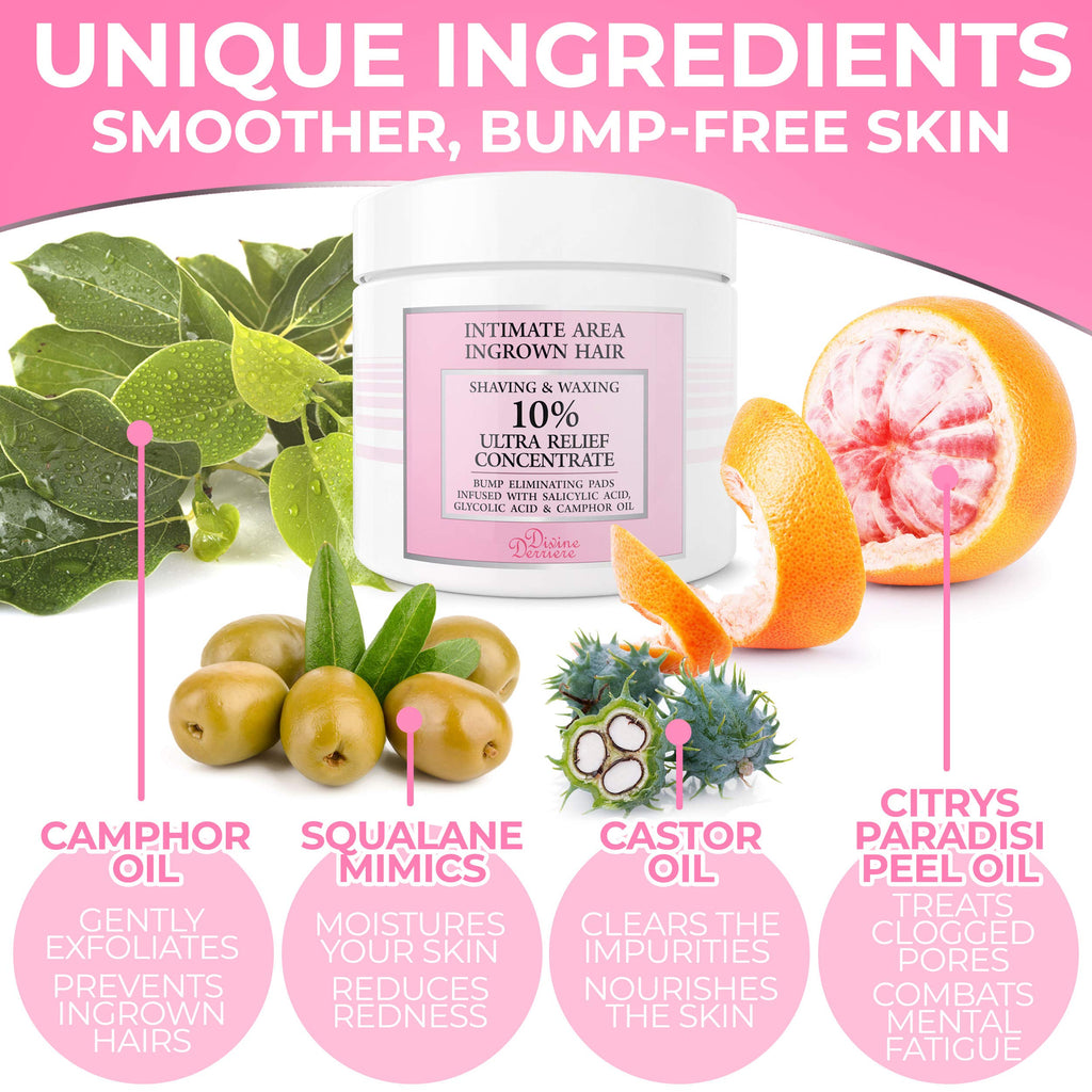 Divine Derriere Ingrown Hair Treatment Pads (Razor Bump Stopper) After Shave Solution to Eliminate Ingrown Hairs and Razor Burns - Ingrown Hair Treatment Pads for Men and Women