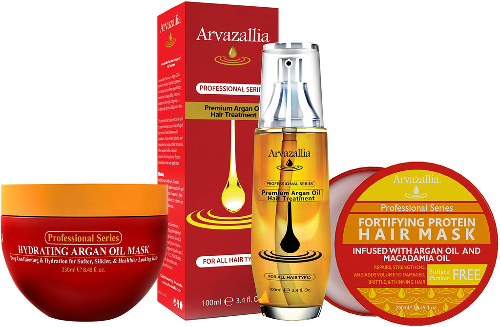 Hydrating Argan Oil Hair Mask , Protein Hair Mask , and Premium Argan Oil Hair Treatment Bundle - The Ultimate Hydration and Hair Repair Products for Damaged Hair or Dry Hair by Arvazallia